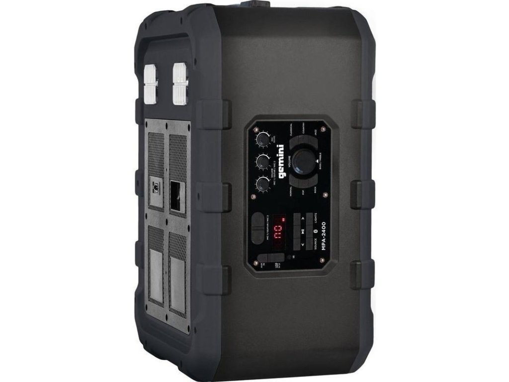 Prineste na svoju budúcu párty hlboké basy, perfektnú kvalitu zvuku a dizajn odolný voči poveternostným vplyvom. S Gemini MPA-2400 môžete streamovať hudbu z vášho Bluetooth zariadenia alebo pripojiť prakticky akýkoľvek zdroj zvuku cez AUX vstup, nehovoriac o vyhradených vstupoch pre mikrofón a gitaru alebo USB porte, z ktorého môžete tiež prehrávať hudbu. K dispozícii je DSP so 6 predvoľbami pre prispôsobenie zvuku vašim prianiam. Ovládanie basov a výšok tiež ponúka rýchlu možnosť korekcie zvuku. 10" basový reproduktor poskytuje potrebný základ basov. 3" výškový reproduktor prináša transparentné stredy a výšky. K dispozícii je celkom 240 W špičkového výkonu. Vďaka certifikácii IPX4 sa reproduktor nezľakne ani vody. Dobíjacia batéria, terénne kolieska a výsuvná teleskopická rukoväť, umožňujú vziať si vašu obľúbenú hudbu so sebou, nech už ste kdekoľvek.