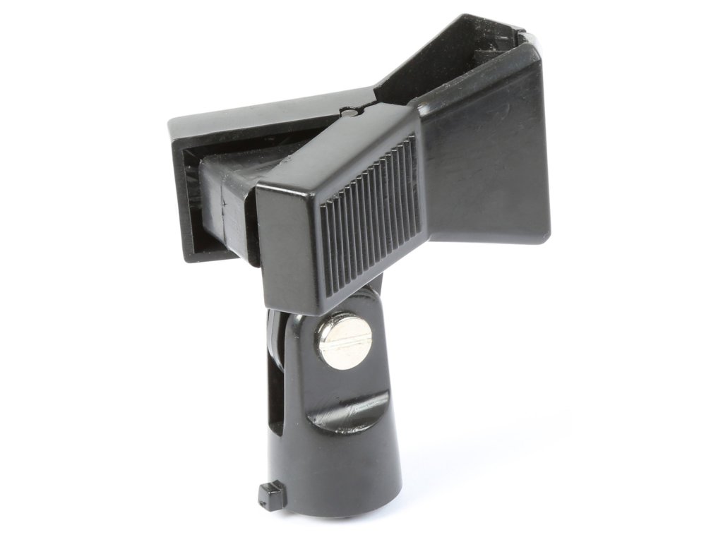 Plastový držiak mikrofónu s 3/8" až 5/8" závitovým adaptérom. Vhodný pre väčšinu mikrofónov s max. priemer tela 30 mm.