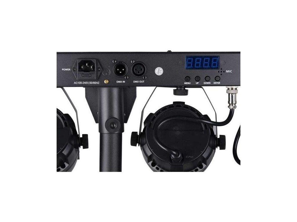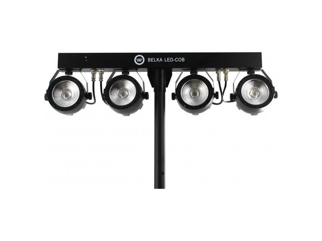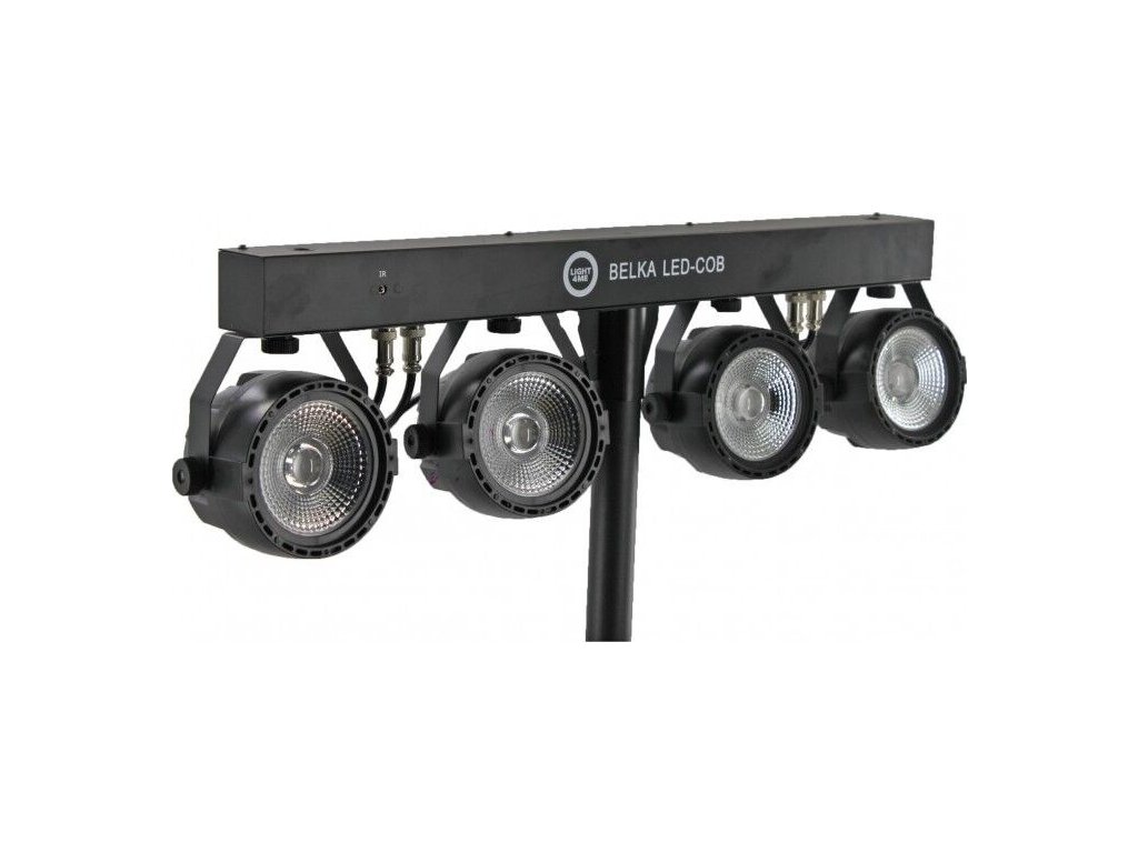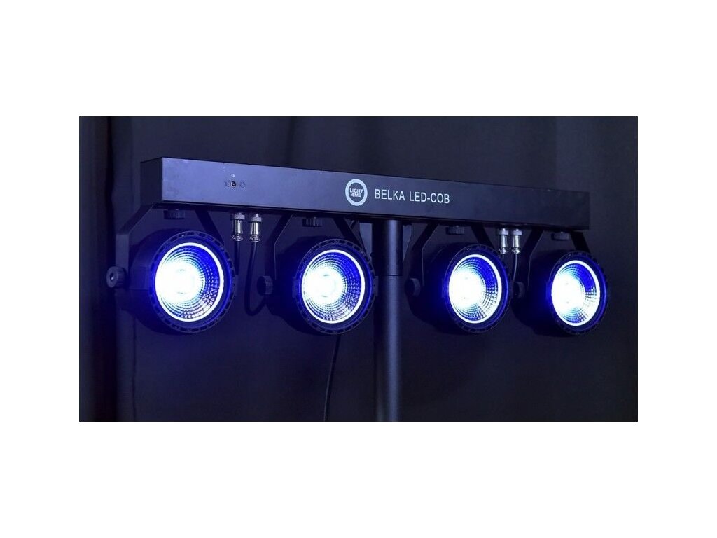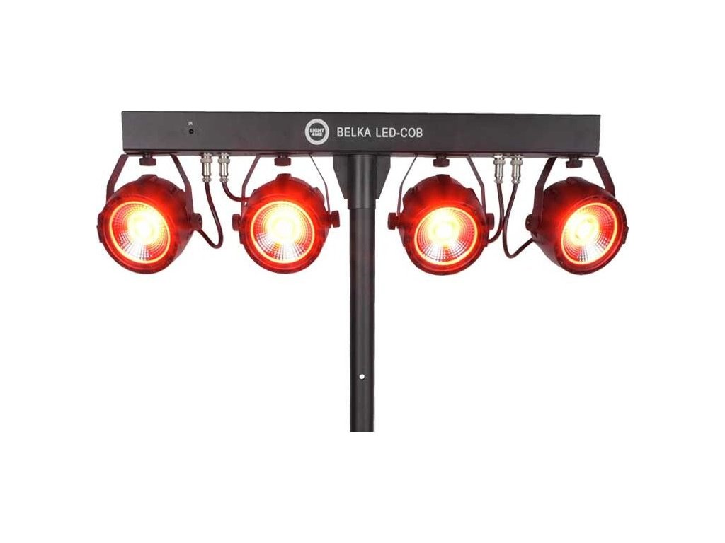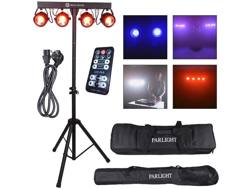 Light4Me Belka LED COB PAR je kompletná svetelná súprava s možnosťou diaľkového ovládania, ktorá sa skvele hodí na každú akciu. Jej najdôležitejšia časť tvorí 4 robustné LED PAR reflektory s diódami COB (Chip On Board). Každý reflektor má výkon 30 wattov a pracuje vo farebnej palete RGB (červená, zelená, modrá). Osvetlenie je upevnené na 66-centimetrovej lište, ktorá má na zadnej strane ovládací panel skladajúci sa zo štyroch tlačidiel (Menu, Hore, Dole, Potvrdiť) a LED displeja.
