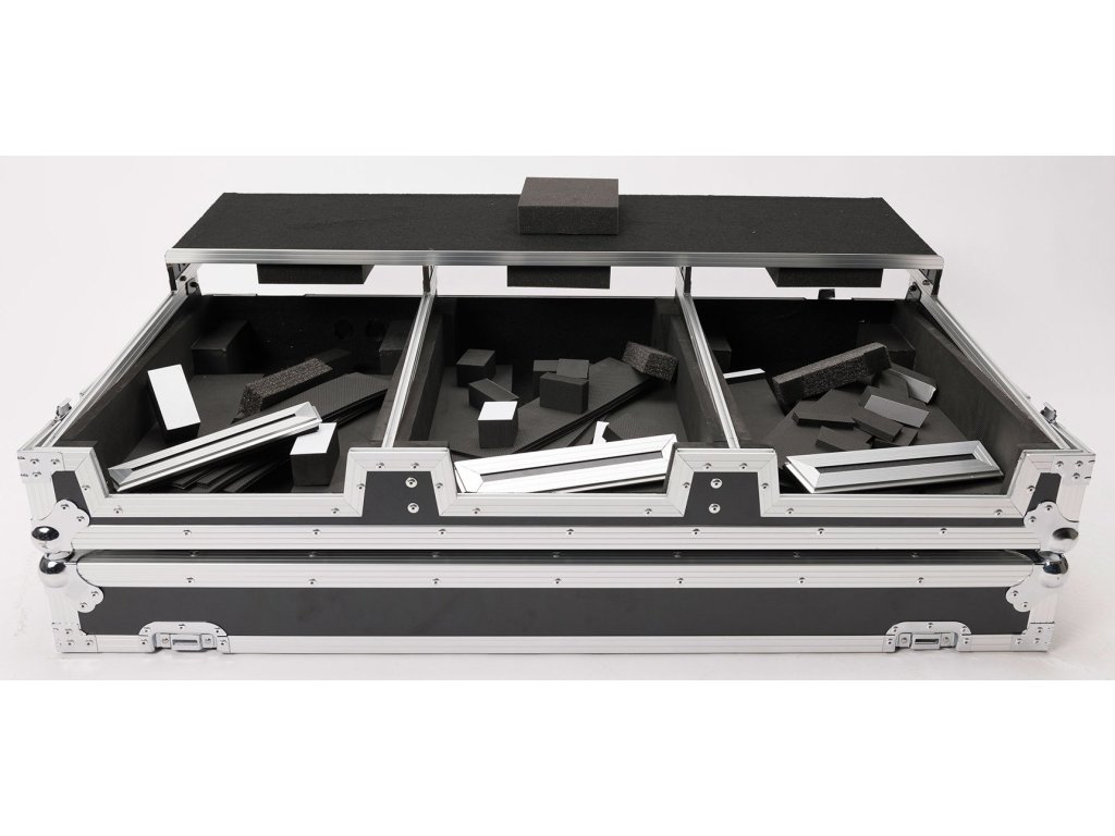 Jedna veľkosť pre všetkých! Navrhnuté na mieru pre mobilných DJ-ov, aby pojalo dva CDJ alebo multimediálne prehrávače a jeden štvor kanálový klubový mixážny pult. Každá priehradka pre CD prehrávač a mixážny pult je vybavená ďalšími penovými lištami, ktoré zaisťujú univerzálne uchytenie všetkých modelov Pioneer DJ, Denon, Allen & Heath, Denon, Rane, Reloop atď. Vďaka odnímateľným krytom predného panelu, užitočným portom pre prístup ku káblom a mimoriadne širokej platforme pre notebook je pracovná plocha pripravená na akciu behom okamihu, pretože zariadenie už nie je potrebné z kufra vyberať. Tento kufor, vyrobený z 9mm vinylom laminovanej preglejky, robustných hliníkových profilov, odolných motýlikových západiek a hladko pojazdných koliesok, poskytuje dokonalú ochranu pre mobilné použitie na cestách.