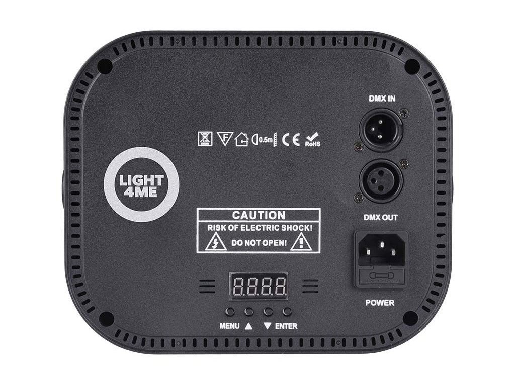 Efekt Light4Me Multiphase má kompaktné puzdro s montážnym držiakom pre jednoduchú inštaláciu scénického osvetlenia kdekoľvek. Jednoduché diaľkové ovládanie zaisťuje bezdrôtové diaľkové ovládanie. Na zadnej strane krytu zariadenia je 3-pinový XLR vstup a výstup na ovládanie LED efektu pomocou DMX protokolu a ovládací panel pozostávajúci z digitálneho displeja a 4 tlačidiel. S ich pomocou môžeme meniť nastavenia v ponuke a tiež si vybrať jeden zo štyroch prevádzkových režimov, ktoré vás zaujímajú: