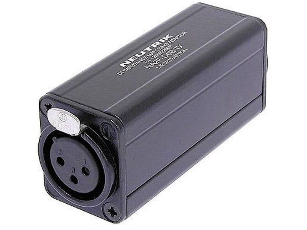 Miniatúrny vyvažovací symetrický transformátor/adaptér, 3-pólová XLR samica - RCA / phono konektor, čierne kódovanie.