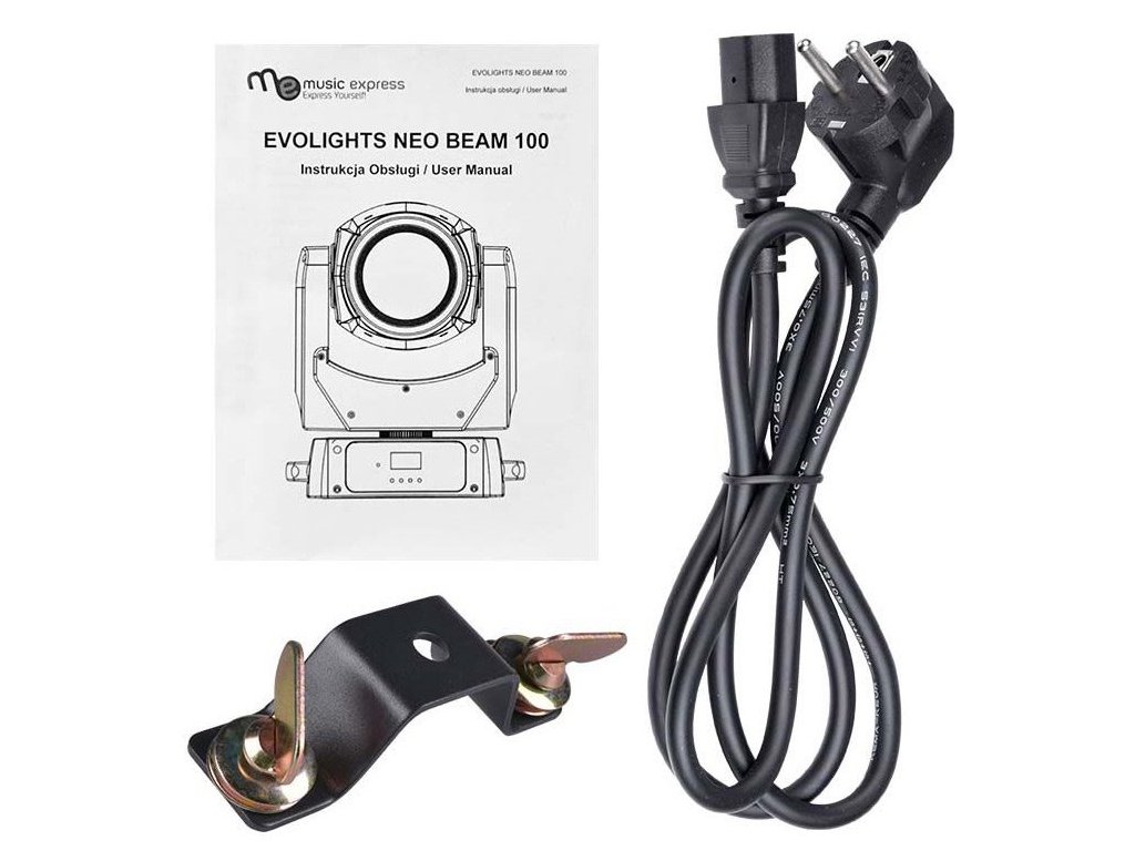 EVOLIGHTS NEO BEAM 100W je profesionálna LED pohyblivá hlava, ktorá sa skvele hodí ako pódiové osvetlenie počas koncertov, predstavení, galavečerov, show a prezentácií, v tanečných kluboch a diskotékach, rovnako ako svietidlo pre DJov, kapely a eventové spoločnosti. Bodové svietidlo je vybavené silnou, bielou LED s výkonom 100 wattov. Úzky uhol lúča vytvára koncentrovaný a svetlom nasýtený lúč s teplotou bielej farby až 9000 Kelvinov.
