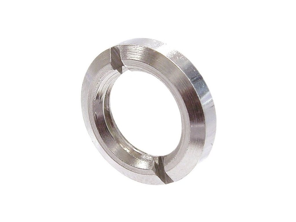 Niklovaná kovová prstencová matica.