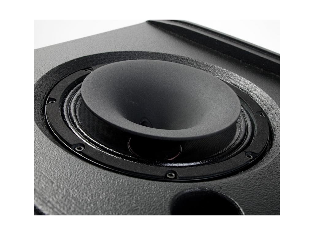 Ozvučnica je konštruovaná z baltskej brezovej preglejky a pred drsnými podmienkami mobilného nasadenia je chránená neobyčajne odolným náterom. Prenášanie uľahčí ergonomické držadlo integrované do prípojného panelu, na protiľahlej strane je umiestnená oceľová príruba pre inštaláciu reproboxu na stojan.