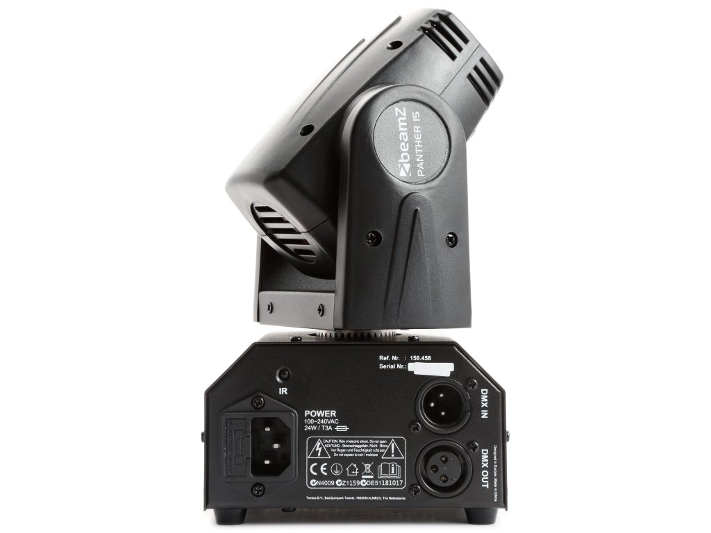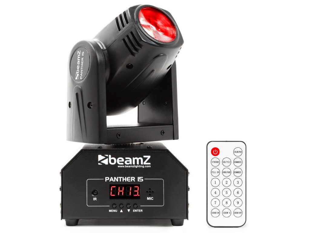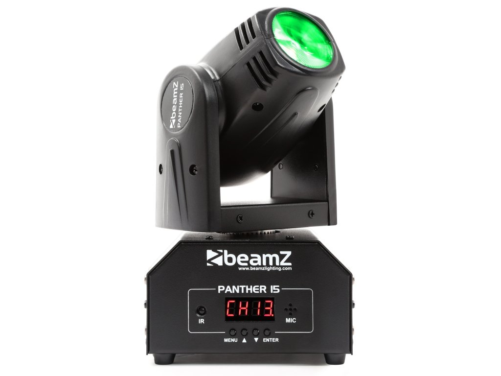 Veľmi kompaktná pohyblivá hlava Panther s jasným výstupom. Pohyblivá hlava Panther 15 LED môže byť použitá v DMX alebo samostatnom režime. V samostatnom režime si môžete vybrať medzi automatickým alebo zvukovo riadeným režimom alebo použiť priložené infračervené diaľkové ovládanie. Pri prevádzke v DMX režime máte plnú kontrolu nad 14 alebo 16 DMX kanálmi. Medzi jeho vlastnosti patrí nastaviteľná rýchlosť stroboskopu a 0-100% stmievač.