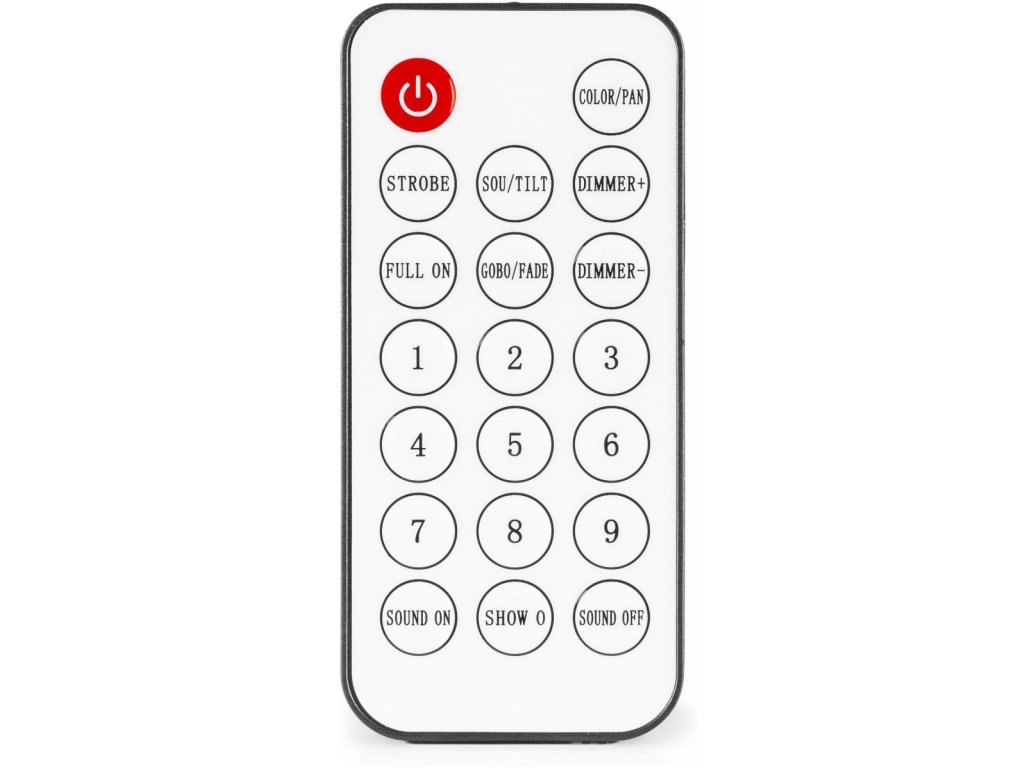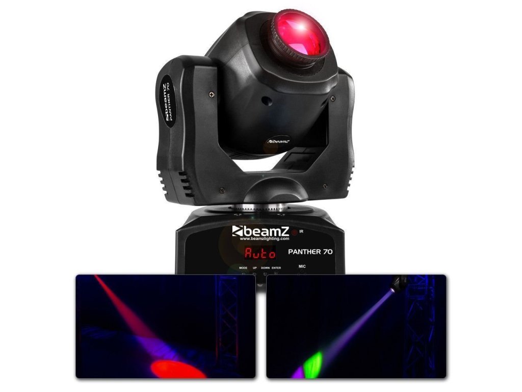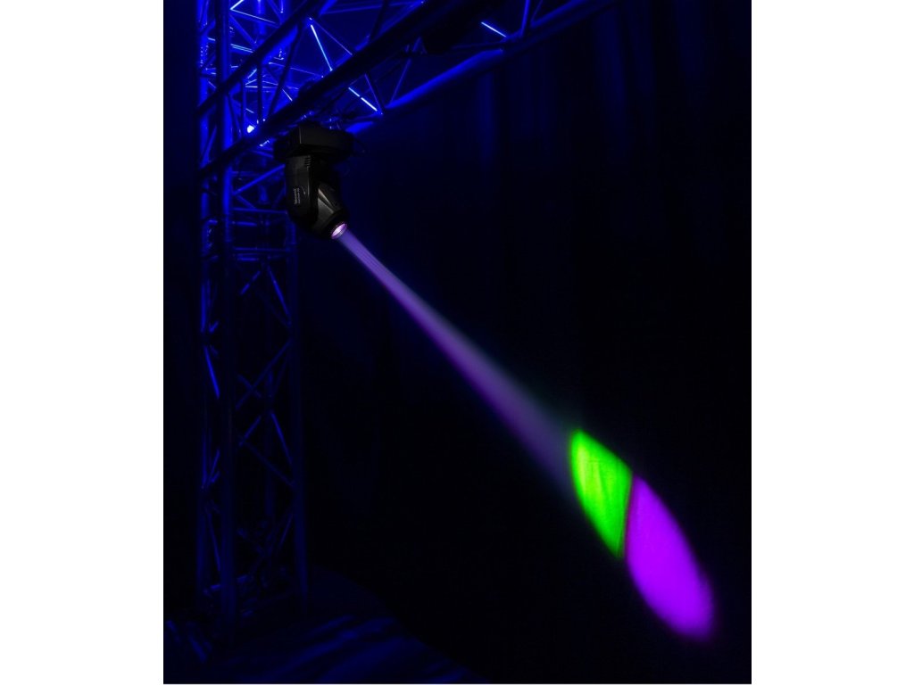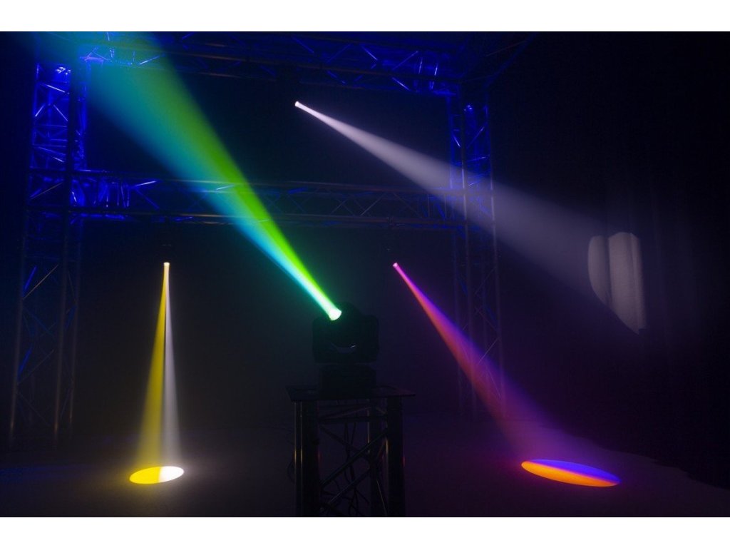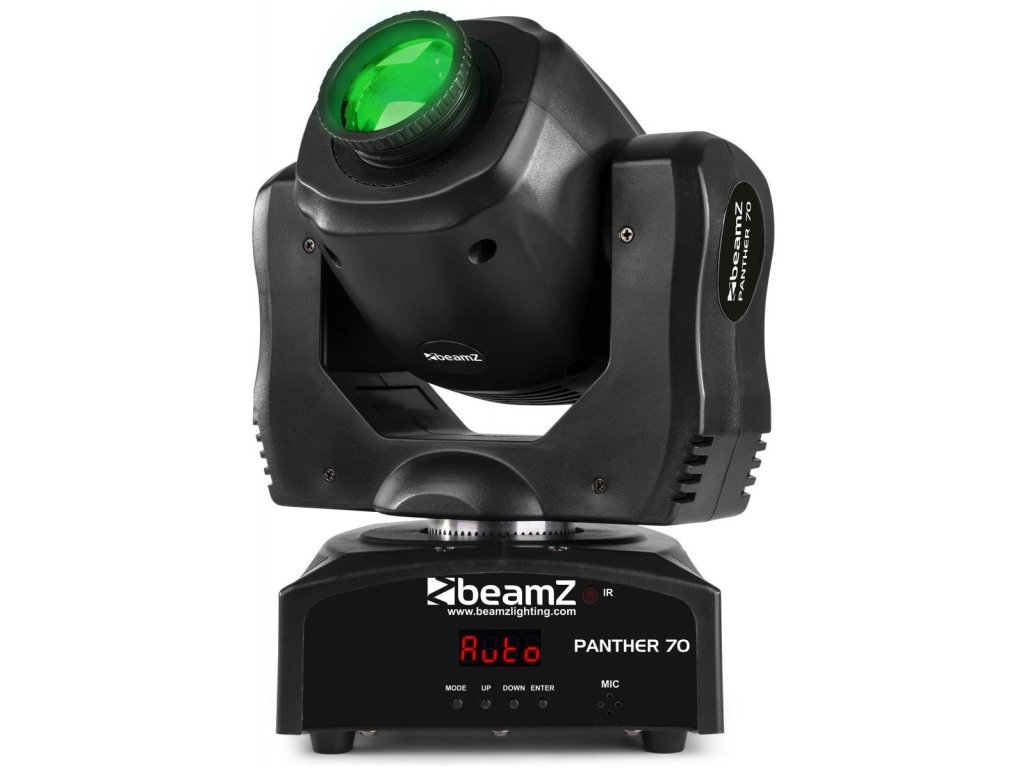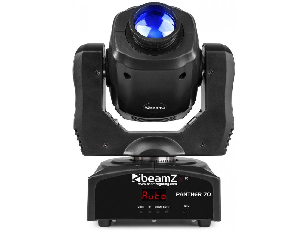 Inteligentná otočná hlavica osadená výkonnou 70 W bielou LED diódou. Farebné koleso osadené 7 farbami a bielou, Gobo koleso so 7 obrazcami a otvorenou pozíciou. Vyžarovací uhol 10, manuálne ostrenie, stmievanie 0 - 100 %, Strobo efekt s nastaviteľnou rýchlosťou zábleskov, funkcia Gobo shake. Ovládanie DMX signálom (9 alebo 11 riadiacich kanálov) alebo hudbou pomocou zabudovaného mikrofónu. Automatický prevádzkový režim a funkcia Master/Slave, 5 zabudovaných programov. Dodávané vrátane IR diaľkového ovládača.