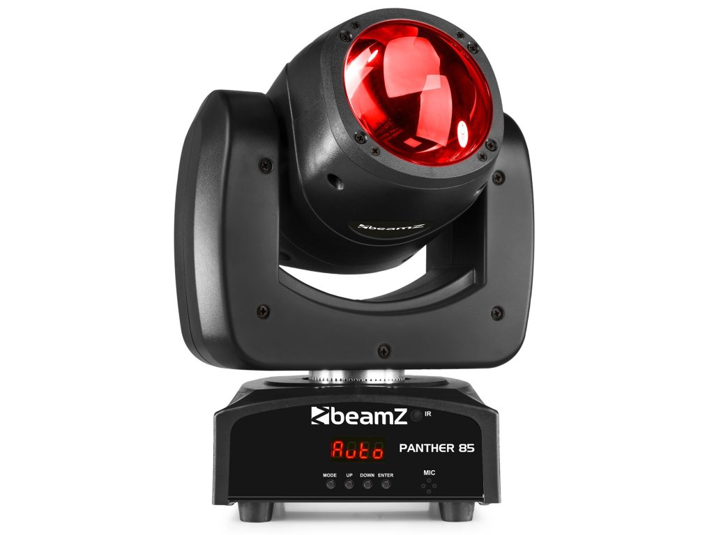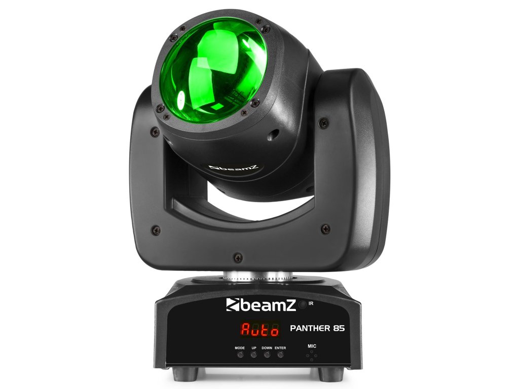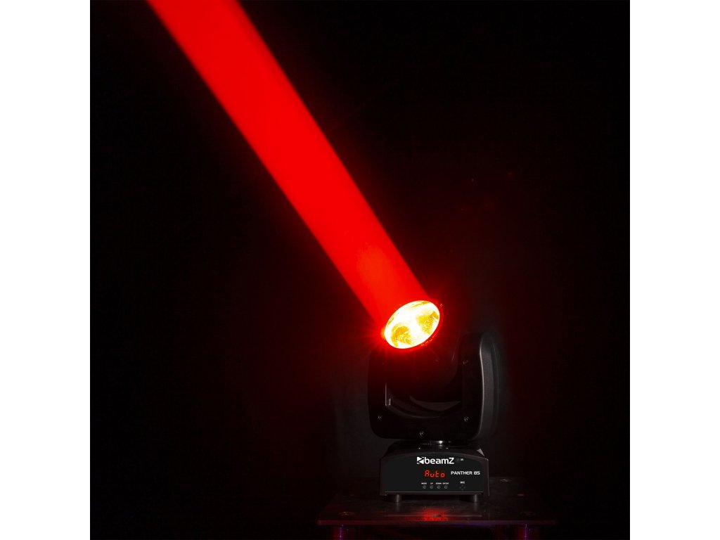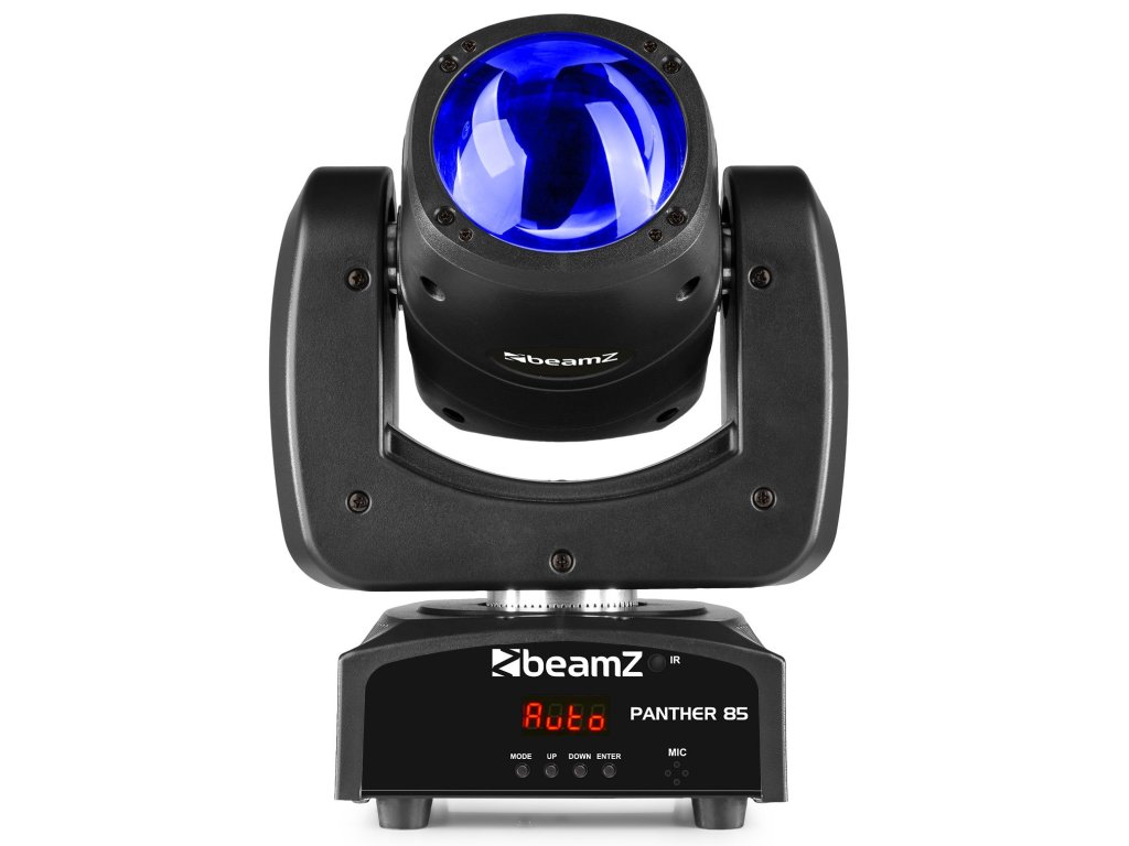 Beamz Panther 85 je kompaktná LED pohyblivá hlava s výkonným svetelným zdrojom. Vysoko výkonná 80W RGBW LED vytvára pevný lúč v akejkoľvek požadovanej farbe. Panther 85 prichádza plug-and-play so vstavanými automatickými a zvukovo aktívnymi funkciami a pri použití v režime DMX je k dispozícii plná kontrola pomocou 13 dostupných DMX kanálov. Medzi funkcie patrí nastaviteľná rýchlosť stroboskopu, stmievač 0-100%, predprogramované programy a synchronizácia master/slave. Perfektné pre mobilných DJov, kapely, malé a stredne veľké pódiá a mnoho ďalších použití.