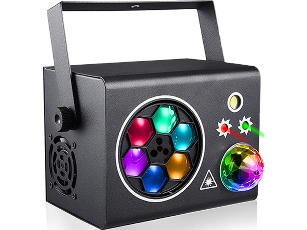 Vybavený gobo efektom s nastaviteľnou rýchlosťou a 6 LED diódami R/G/B/W/P/Y (každá s výkonom 3W), efektom diskotékovej gule s 3 diódami R/G/B (každá s výkonom 1W), 100mW červeným laserom a 15mW zeleným laserom a tiež bielym LED stroboskopom s výkonom 10W. Party Box-A poskytuje veľkolepé svetelné efekty. Ideálne sa hodí na párty v klube, doma alebo v banketových sálach a vytvorí show, na ktorú sa nezabúda.