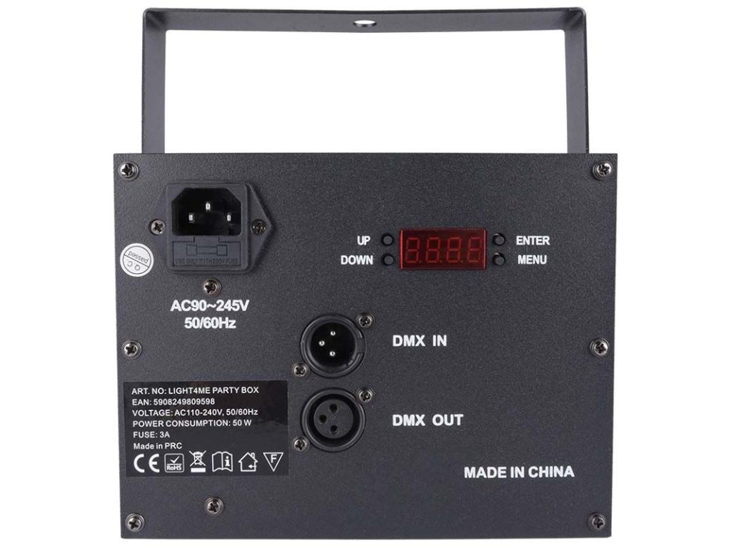 LIGHT4ME PARTY BOX je LED osvetlenie s viacerými efektmi, ktoré môžete použiť na akejkoľvek párty! Skvele funguje na diskotékach, v kluboch a na tanečných parketoch, počas silvestrovských večierkov, ale aj na house party alebo ako LED efekt pre mobilného DJ-a.