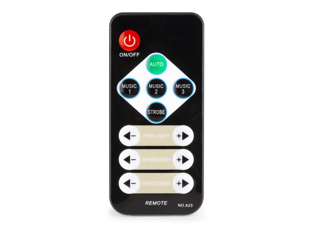 - Režimy: automatické programy, DMX, Master / Slave