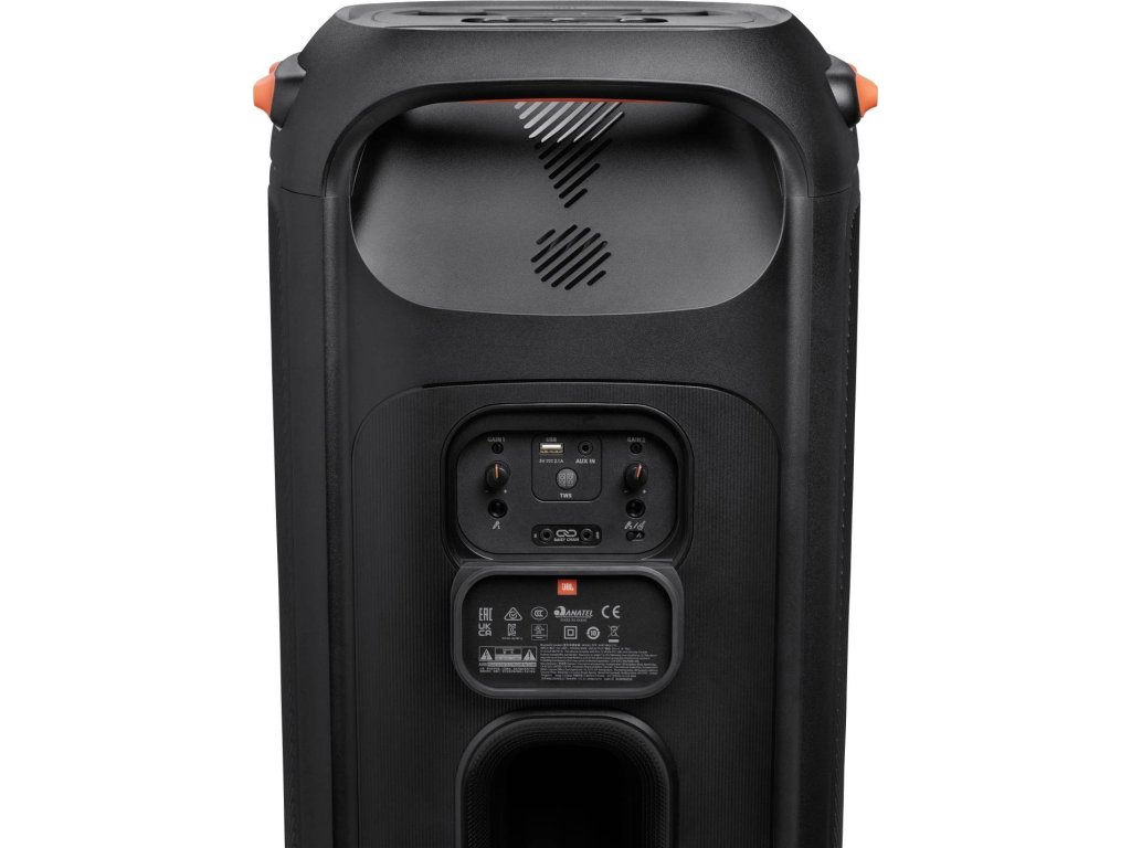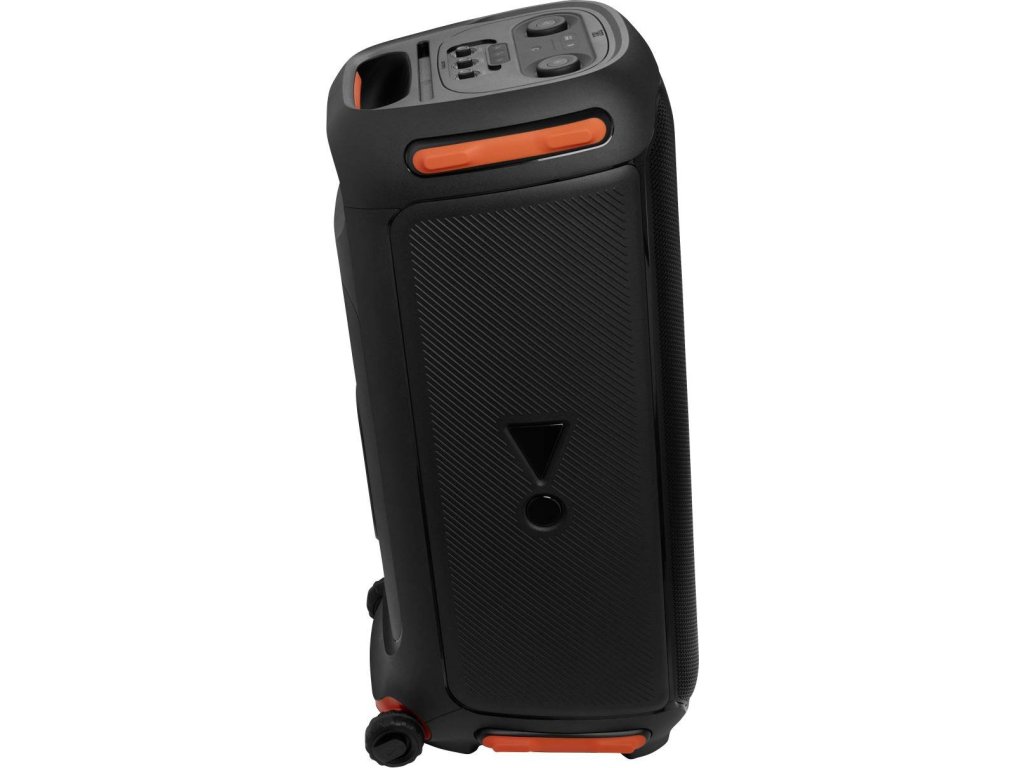 Reproduktor PartyBox 710 odolný voči vode premení vašu ďalšiu akciu na skutočný večierok, koncert alebo nočný klub a to vďaka svojej jedinečnej a farebnej svetelnej show synchronizovanej so zvukom JBL Original Pro Sound. Minimalistické a intuitívne ovládacie prvky na hornom paneli a aplikácia PartyBox vám umožňujú vytvárať hudobné a vizuálne zážitky na vyššej úrovni. Prispôsobenie blikajúcich, stroboskopických svetiel a úžasného zvuku z duálnej sady tweeterov a wooferov bohatých na basy. Jediné tlačidlo True Wireless Sound okamžite spáruje dva PartyBox 710 pre ešte väčšiu skupinu ľudí. A s ľahko uchopiteľnou rukoväťou a robustnými kolieskami zaistí ľahkú manipuláciu bez ohľadu na to, kde sa daný večierok koná.