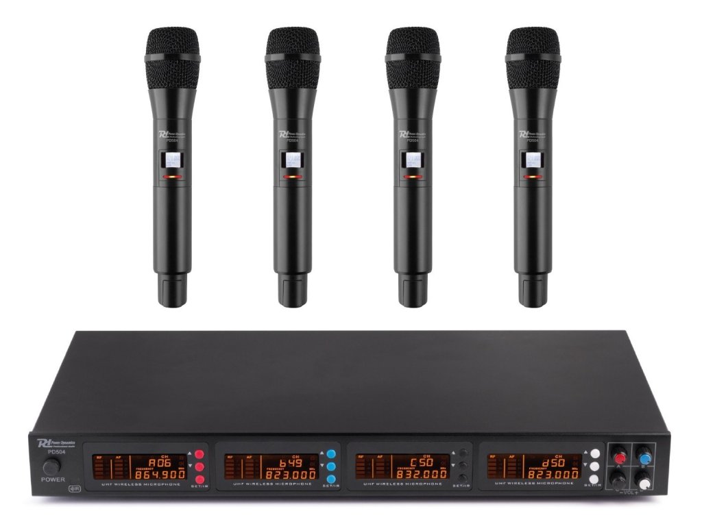 PD504H Bezdrôtový UHF mikrofónny systém so 4 ručnými mikrofónmi
