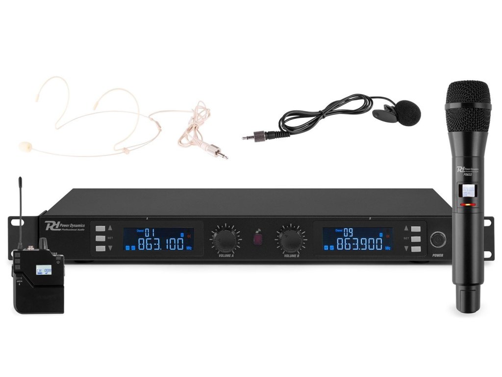 Power Dynamics PD632C je výkonný digitálny bezdrôtový systém 2x 20-kanálov UHF, ktorý poskytuje vynikajúci a čistý prenos zvuku. Prijímač je vybavený dynamickým LCD displejom, ovládaním hlasitosti a vyváženým XLR výstupom. Vhodné pre DJov, vokály, prezentácie, školenia a iné aktivity. Sada obsahuje ručný mikrofón a bodypack vysielač s náhlavným a klopovým mikrofónom.