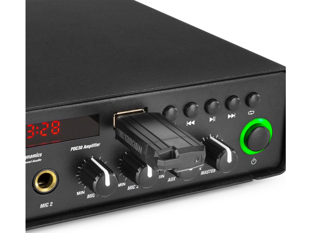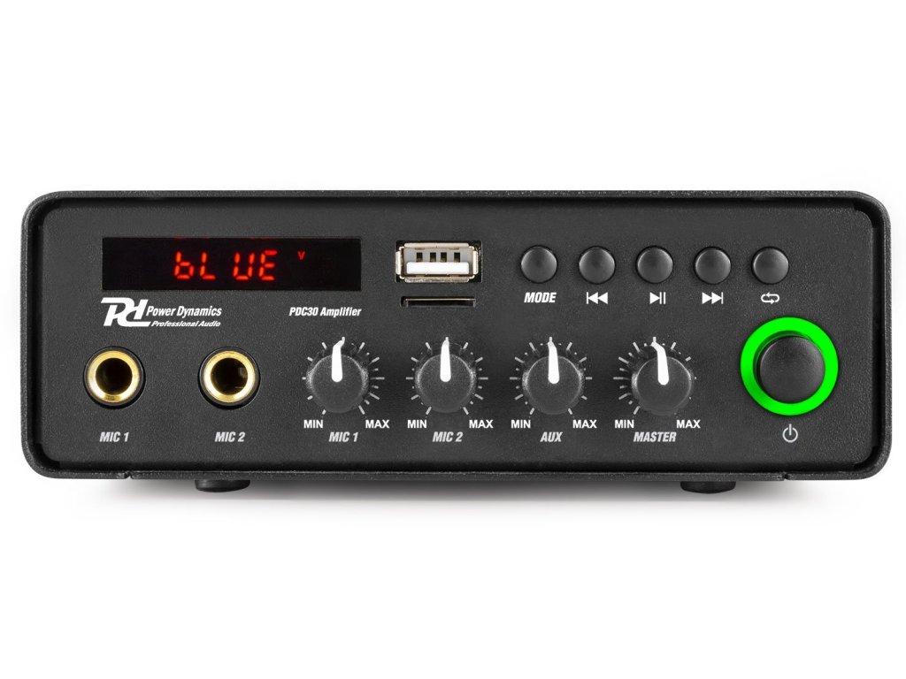 PDC30 je multifunkčný zosilňovač vybavený multimediálnym prehrávačom. Tento zosilňovač, ktorý sa vyznačuje jednoduchým použitím, vynikajúcim výkonom a spoľahlivosťou, je možné ľahko pripojiť cez 220V alebo cez 12V. Oba je možné bez problémov pripojiť 4 Ohmové a 8 Ohmové reproduktory. PDC30 je zvlášť vhodný pre širokú škálu aplikácií a v rôznych inštaláciách. Obsahuje BT bezdrôtové streamovanie, 2 mikrofónne vstupy, USB/MicroSD port pre prehrávanie MP3 a ovládací panel. Ideálny pre pevné alebo mobilné použitie. (12V auto)