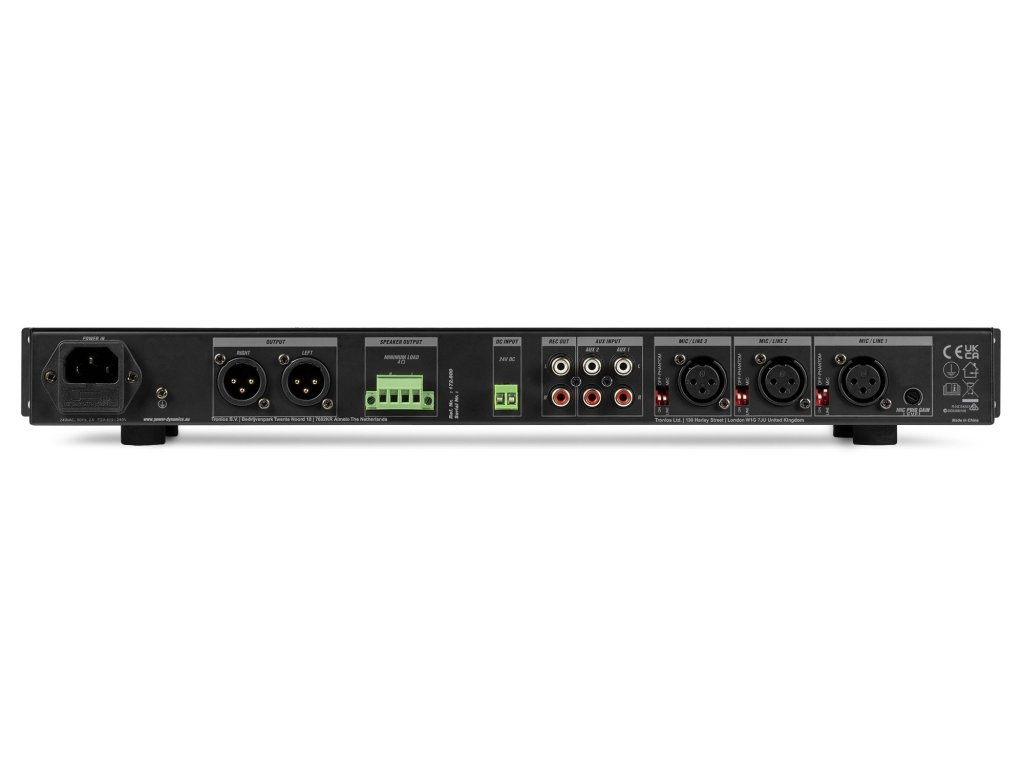 PDC90 je kompaktný stereofónny multimediálny prehrávač so vstavaným zosilňovačom triedy D. Tento prehrávač typu "všetko v jednom" je vybavený tunerom DAB+, slotom USB a prijímačom BT na streamovanie hudby priamo z vášho smartfónu/tabletu do prehrávača. Na prednej strane sa nachádza 3,5 mm pomocný vstup a zadná strana je vybavená 3 symetrickými vstupmi s fantómovým napájaním, ktoré je možné nastaviť pomocou prepínačov Mic/Line, a 2 nesymetrickými stereofónnymi vstupmi RCA.