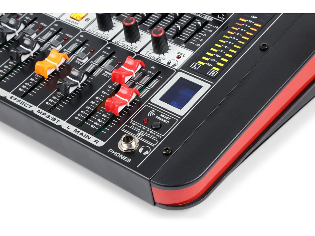 Stolný dizajnový mixážny pult so vstavaným zosilňovačom a mnohými atraktívnymi funkciami. Medzi funkcie patrí prepínače stlmenia a sólo na každom kanáli, vstavaný USB prehrávač s digitálnym displejom a BT prijímač pre streamovanie hudby do mixu. Ideálne pre live zostavy a malé kapely.