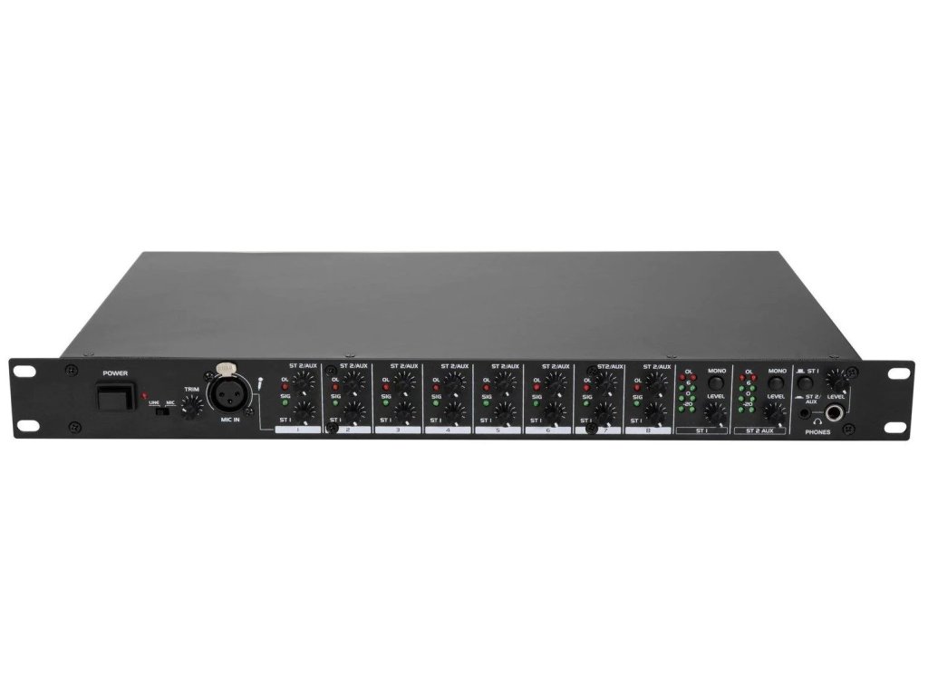 - Multifunkčný 8-kanálový stereo mixážny pult s 2 nastaviteľnými zónovými výstupmi