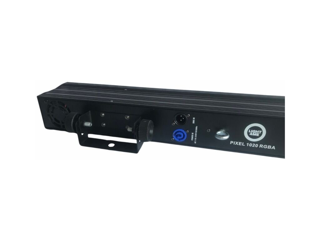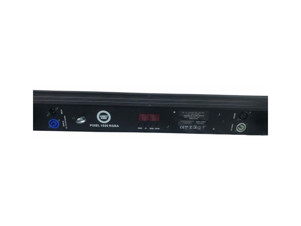 Light4Me Pixel 1020 RGBA LED pás je vybavený 10 výkonnými, 20W LED diódami v palete farieb RGBA (červená, zelená, modrá a jantárová). Farebné makrá RGBA, vstavané statické farby a stroboskop s nastaviteľnou rýchlosťou uľahčujú používateľom spúšťanie hotových, veľkolepých vizuálnych efektov. Možnosť Pixel Control umožňuje presné ovládanie každej LED diódy. Zariadenie je vybavené stmievačom s plným rozsahom, ktorý umožňuje jemné doladenie jasu tak, aby vyhovoval vašej svetelnej šou. Light4Me Pixel 1020 RGBA má krytie IP20, čo znamená, že je chránené proti vniknutiu pevných cudzích predmetov s priemerom 12,5 mm a väčších. Vďaka 4 režimom DMX je personalizácia vytvorených svetelných efektov takmer neobmedzená. Vďaka robustnému, elegantnému čiernemu krytu je zariadenie nenápadné a ľahko zapadne do akéhokoľvek miesta. Na zadnom paneli sa nachádzajú napájacie zásuvky Powercon (vrátane tzv. "power linkingu" umožňujúceho prenos napájania priamo zo zariadenia do zariadenia), vstup a výstup DMX pre integráciu do existujúcej svetelnej inštalácie a tiež intuitívny ovládací panel s digitálnym displejom a 4 tlačidlami. Pomocou nich môžeme meniť nastavenia v menu a tiež zvoliť jeden z piatich prevádzkových režimov: