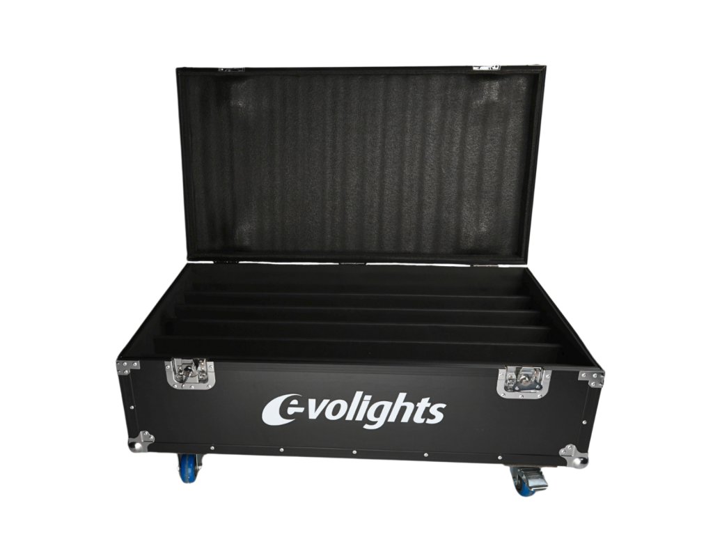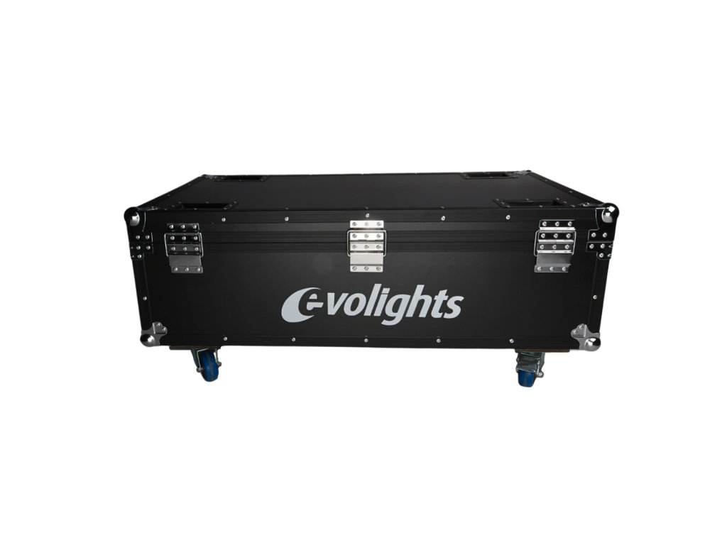 Evolights Pixel Bar 18x10W RGBW kufor 6in1 je profesionálny a solídne spracovaný prepravný kufor pre šesť svetelných líšt Evolights Pixel Bar 18x10W RGBW alebo iné zariadenia s rozmermi podobnými týmto svetelným efektom. Kufor bol vyrobený zo silnej, 7-milimetrovej preglejky natretej čiernou, vodeodolnou farbou. Jeho hrany sú vystužené hliníkovými profilmi. Na rohoch sa nachádzajú guľové chrómované kryty, ktoré dodatočne spevňujú konštrukciu a chránia okolie kufra vďaka eliminácii ostrých hrán.