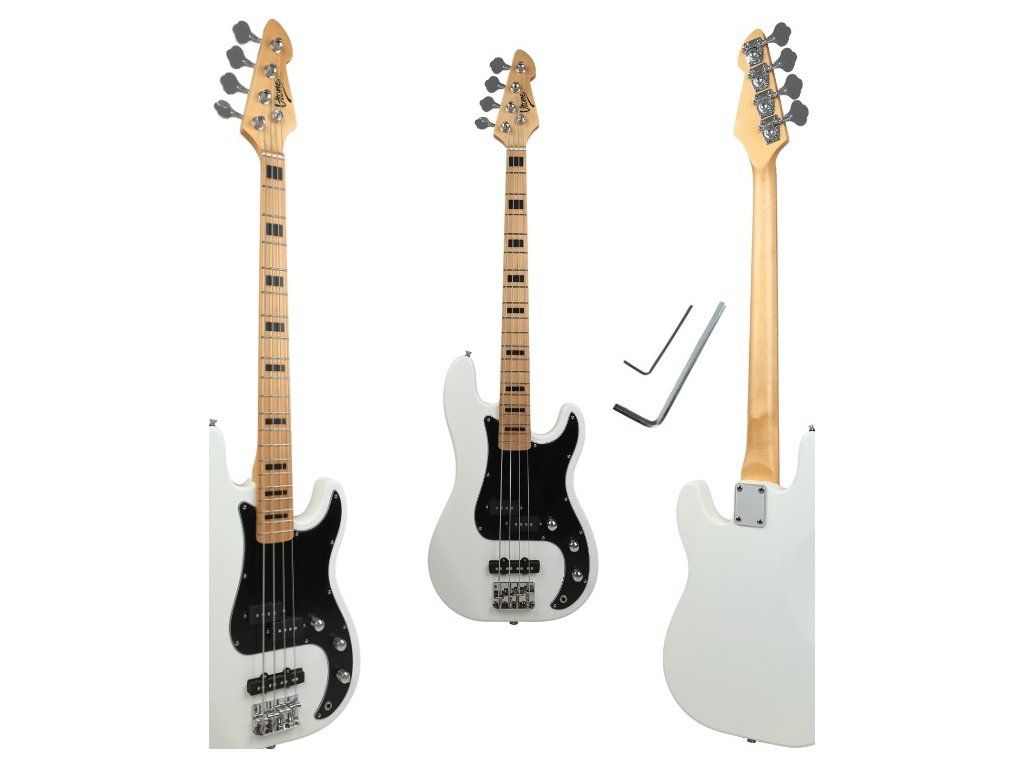 V-TONE PJB46 WH je profesionálna basgitara, ktorá upúta pozornosť svojim vynikajúcim zvukom a štýlovým vzhľadom. Jej plná veľkosť 4/4 z nej robí ideálnu voľbu pre profesionálnych hudobníkov, ktorí si cenia kvalitné spracovanie nástroja a bohatý zvuk. Vďaka použitiu lipového dreva na telo, javora na krk a technického dreva na hmatník ponúka basgitara nielen ľahkosť, ale aj dlhú životnosť. Biele prevedenie vo vysokom lesku a čierny ochranný kryt jej dodávajú eleganciu a zabezpečujú, že tento nástroj na každom pódiu zaručene vynikne.
