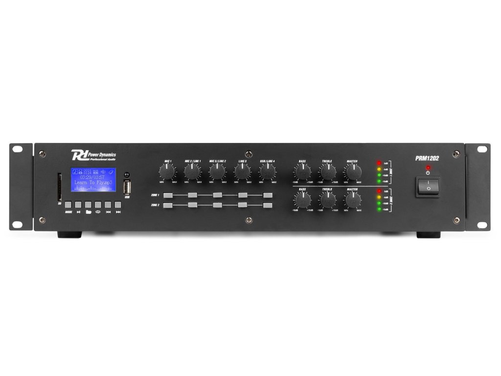 PRM1202 je rackový zosilňovač s 2 samostatnými 120W výstupmi, ktoré je možné použiť buď ako 100V zosilňovač, alebo ako štandardný nízkoimpedančný zosilňovač. Tento 2-zónový zosilňovač je navrhnutý pre viacizbové systémy vyžadujúce rôzne zdroje zvuku. Je vybavený prijímačom BT a portami USB/SD na prehrávanie MP3 vrátane jasného LCD displeja s ID3 tagom. PRM1202 je vybavený prepínateľnými XLR vstupmi s 24V fantómovým napájaním, najmä pre pagingové a kondenzátorové mikrofóny. Špeciálne navrhnuté pre aplikácie, ako je, oznámenia, komunikácia, hudba na pozadí, vysielanie v priemyselných závodoch atď.