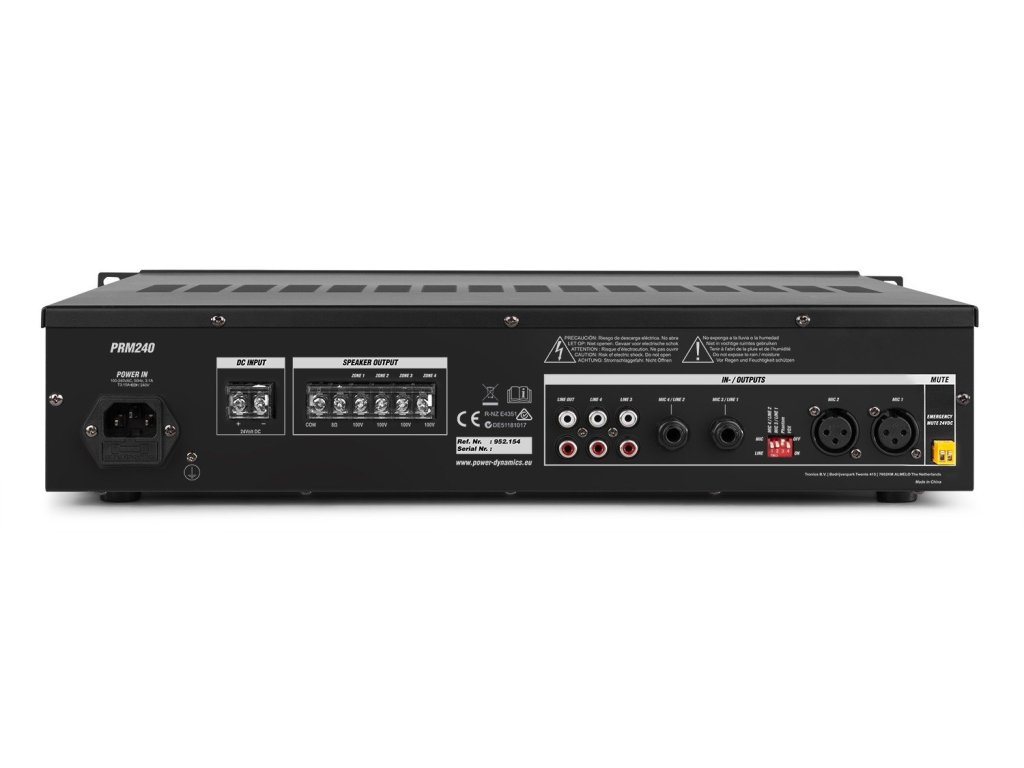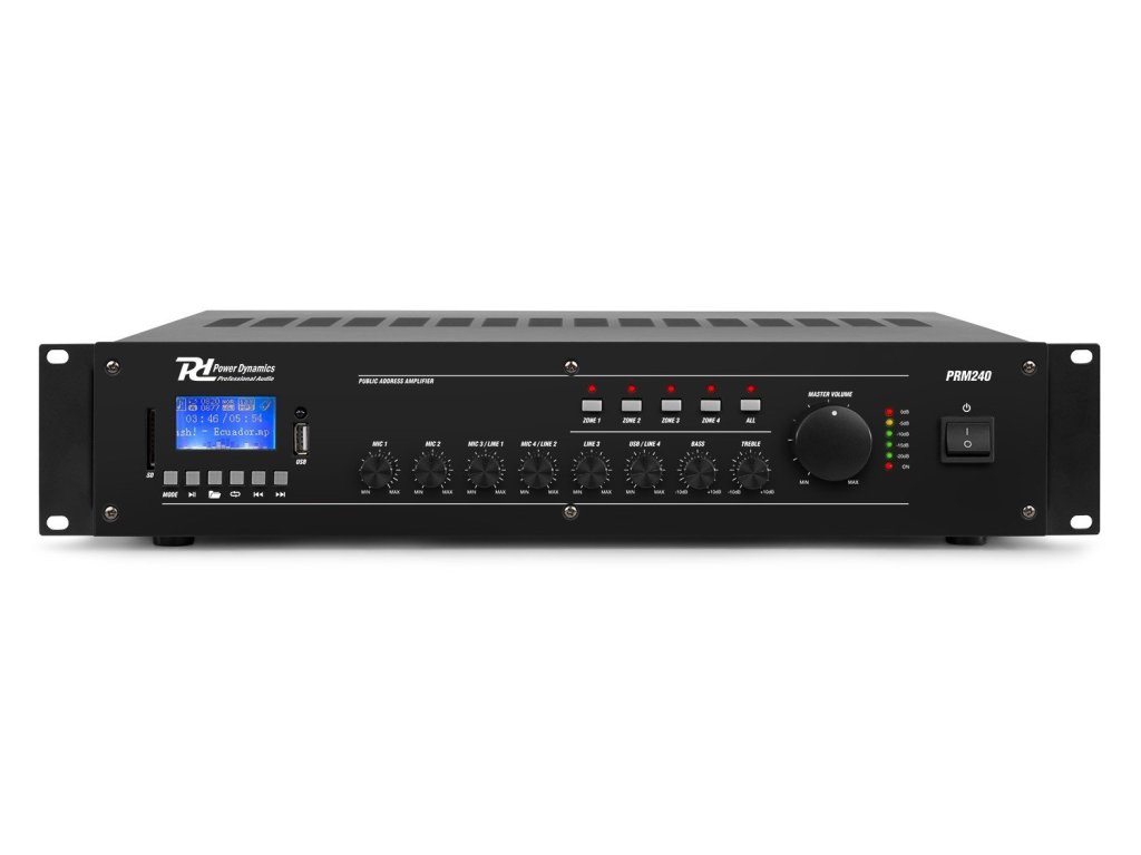 PRM240 je zariadenie určené na umiestnenie do racku. Možno ho použiť ako 100 V zosilňovač alebo ako štandardný nízkoimpedančný zosilňovač. Tieto zosilňovače sú vybavené BT prijímačom a USB / SD portami na prehrávanie MP3 vrátane jasného LCD displeja s ID3 Tagmi. Všetky zosilňovače PRM sú tiež vybavené prepínateľným vstupom XLR s 24V fantómovým napájaním.