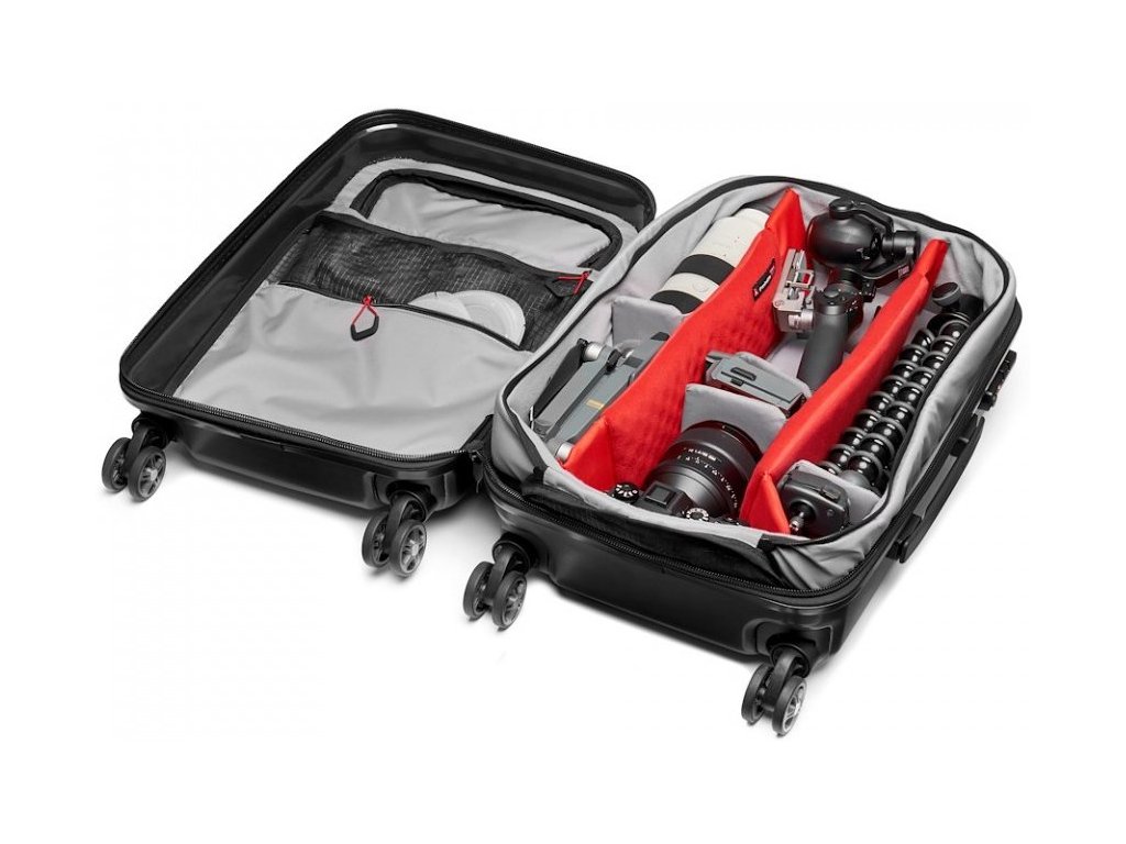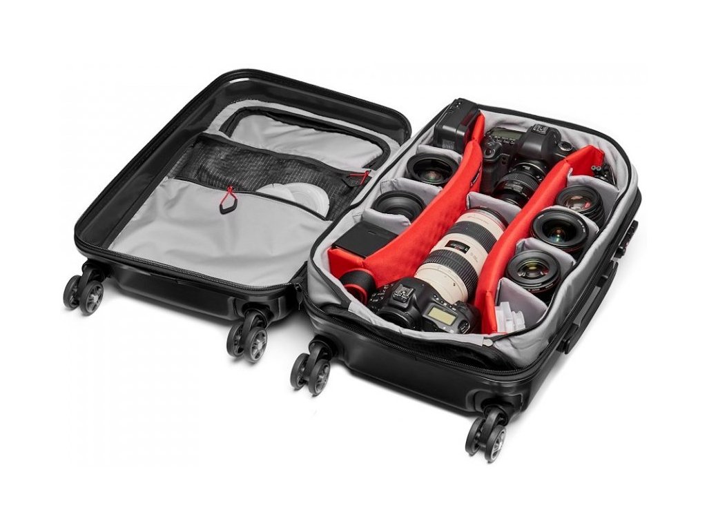 Nový Pro Light Reloader Spin-55 Camera Roller Bag pre DSLR a prémiové CSC je určený pre profesionálnych fotografov. Vyrobené a navrhnuté špeciálne pre fotografov na cestách. Zodpovedá medzinárodnej carry-on veľkosti. Tento úplne nový fotografický kufor Pro Light je odolný kúsok. Navonok je vyrobený z polykarbonátového materiálu a vnútri z lisovaného podnosu EVA, ktorý zaisťuje ľahkosť a ochranu. Obsahuje 4 dvojité kolieska, ktoré pomáhajú prepravovať ťažký obsah a disponuje tiež predným rýchlo dostupným vreckom pre 15-palcový notebook, príslušenstvo alebo ju využijete ako sekundárny prístup pre fotografické vybavenie. Tento fotografický kufor s kolieskami je dodávaný s vnútorným organizovaným puzdrom s prepážkami CPS pre maximálnu flexibilitu vnútornej konfigurácie. Môže byť odstránené na použitie Spin-55 ako bežná cestovná batožina. Je vybavený tiež vnútornými krížovými páskami pre držanie osobných vecí na každodenné použitie. Pojme nielen váš DSLR fotoaparát s objektívom 70/200 mm, druhým telom DSLR a až 3-4 ďalšie objektívy, ale zvládne aj Premium CSC ako Sony A9 s ďalšími objektívmi a DJI Mavic Pro combo kit. Prispôsobte si svoje prenosné vybavenie tak, aby vyhovoval vám na mieru. S 12 ochrannými priehradkami + 2 vnútornými priehradkami CPS, ktoré sa dajú ľahko nastaviť v závislosti od toho, čo v daný deň potrebujete. Okrem toho je vybavený 2 vnútornými priehľadnými vreckami na usporiadanie všetkého malého príslušenstva, káblov, pamäťových kariet atď.