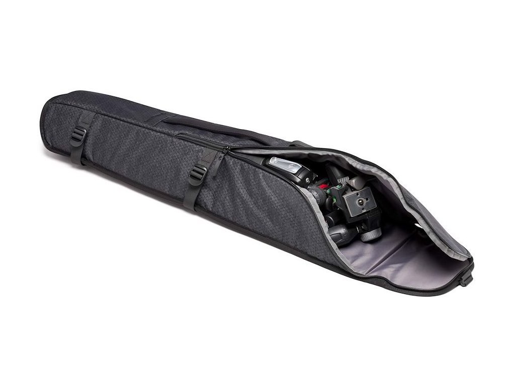 Taška na statív Manfrotto Pro Light Reloader Tough je navrhnutá špeciálne pre kufre radu Tough a je vybavená štyrmi popruhmi, ktoré ju upevnia na kufor Manfrotto Tough a modulárne rozšíria jeho úložné možnosti. Rozšíriteľná dĺžka od 78 do do 91 cm umožňuje pojať statívy rôznych veľkostí, od radu Manfrotto Befree až po 055 s pripojenou guľovou hlavou Xpro alebo trojcestnou hlavou. Jeho nylonový plášť je odolný proti opotrebeniu a vode, zatiaľ čo polstrovaný polyesterový interiér chráni vaše chúlostivé vybavenie. Ak potrebujete statív, ale nie puzdro Tough, odpojte tašku od kufra, uchopte ju za bočnú rukoväť alebo zacvaknite ramenný popruh a použite ju ako tenkú samostatnú tašku.