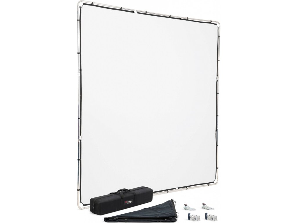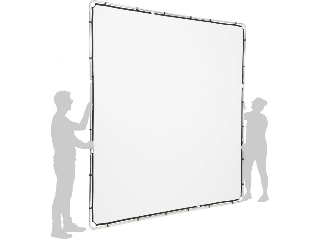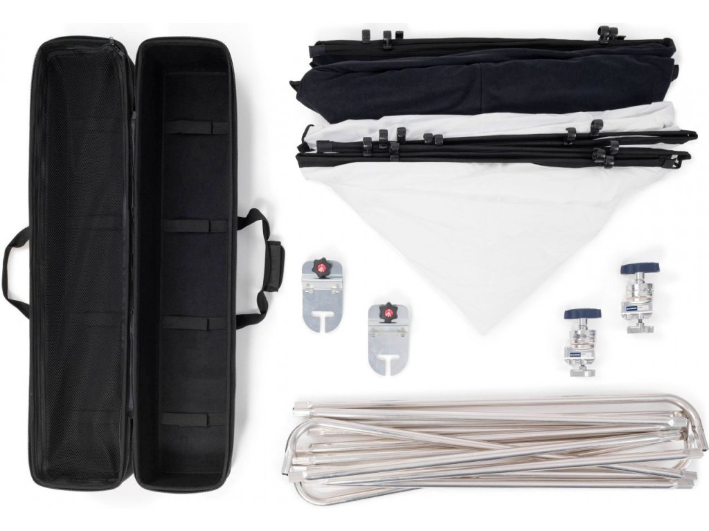 Súprava Manfrotto Pro Scrim All-In-One Kit s rozmermi 290 x 290 cm je ideálna na fotografovanie a natáčanie pri akejkoľvek scéne. Vyznačuje sa ľahkou, ale napriek tomu robustnou hliníkovou konštrukciou s vnútornou gumovou šnúrkou, ktorá zaisťuje správne zloženie rámu a zamedzuje strate niektorého z dielov. Rám je veľmi rýchlo a ľahko pripravený na použitie jednej zo 4 dodávaných plôch (difúzna -1,25 EV, čierna a obojstranná biela/strieborná). Súčasťou balenia sú tri látky, z ktorých každú je možné rýchlo pripnúť na rám a rovnako tak rýchlo ju odopnúť a zameniť za inú.