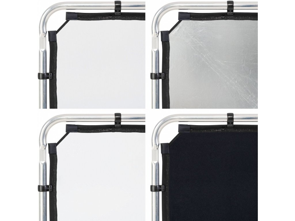 - Obojstranná strieborná/biela látka má dvojaký účel. Strieborná strana ponúka vysoko odrazivosť svetla skvelú pre prácu na dlhé vzdialenosti, kedy skvele vykresľuje tienisté plochy, alebo poskytuje vysoko kontrastné svetlo na kontúrach a všetko bez farebného skreslenia