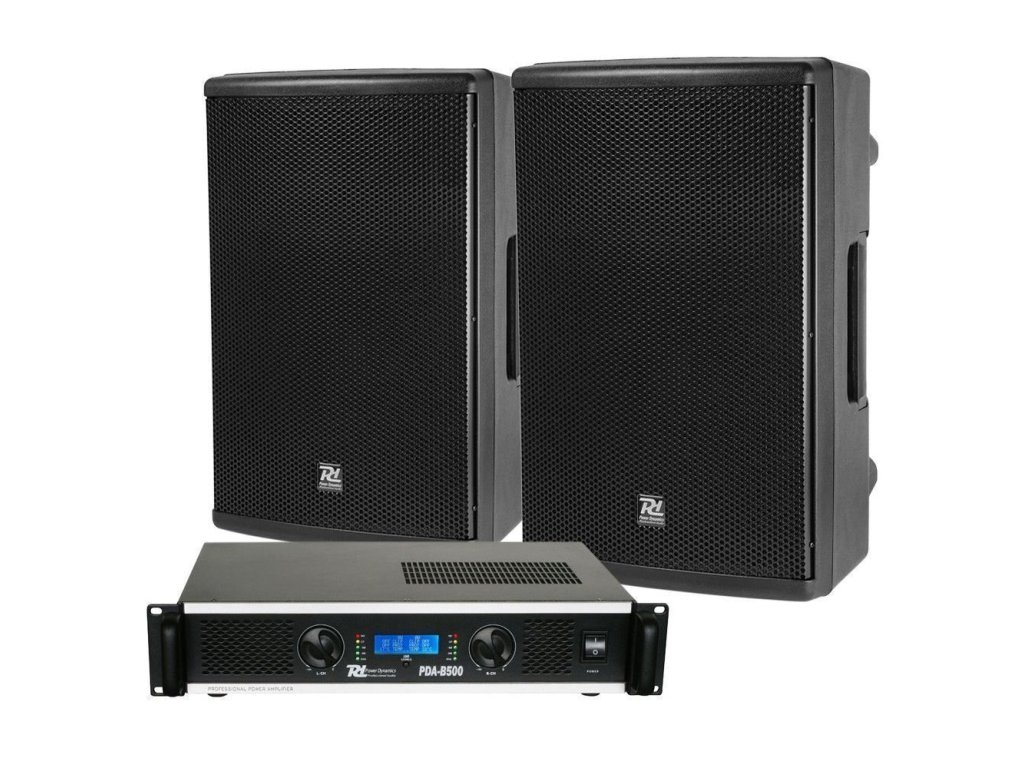 Výhodný set 2 špičkových pasívnych reproboxov Power Dynamics PD412P 12" 1200W so zosilňovačom Power Dynamics PDA-B500 2x150W a reproduktorovými káblami Power Dynamics CX26-5 5m.