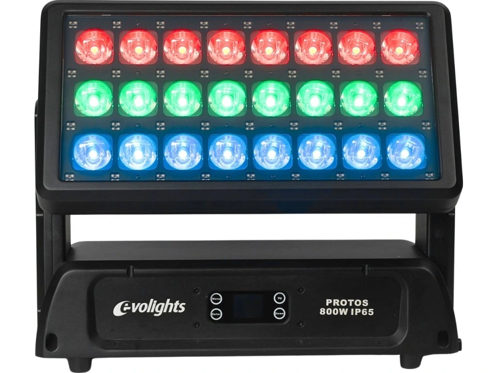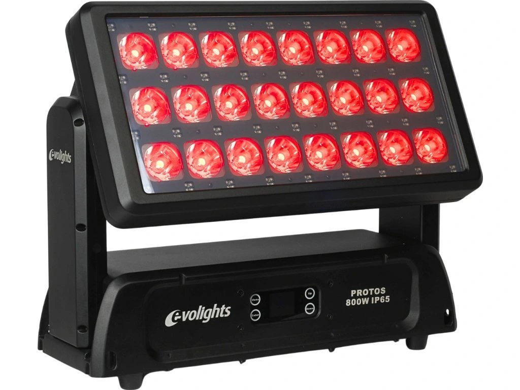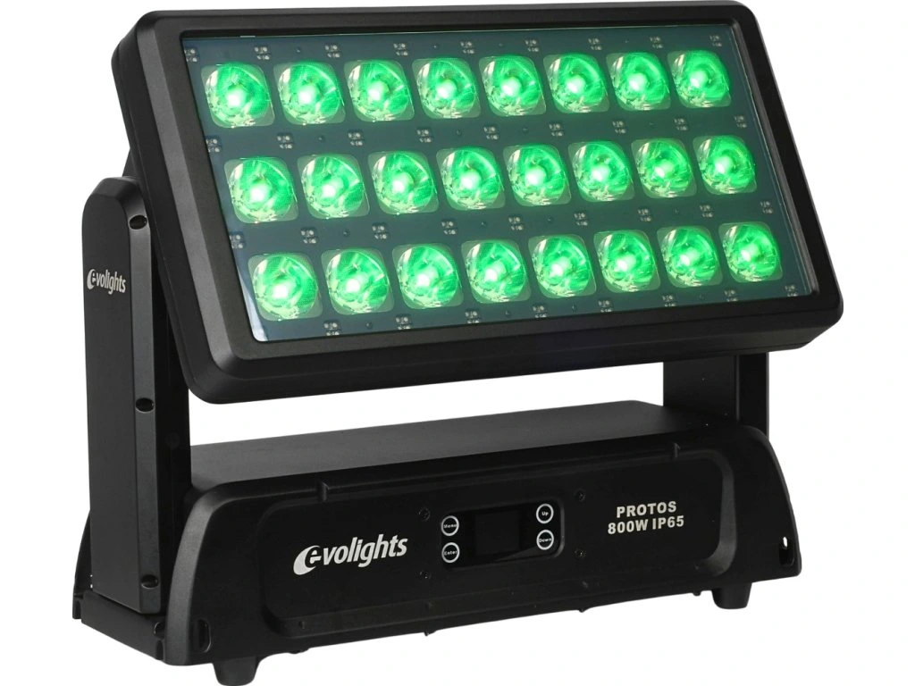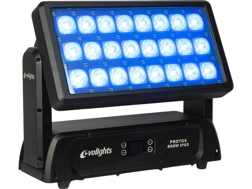 Hľadáte profesionálne pódiové osvetlenie, ktoré si poradí aj v náročných poveternostných podmienkach? Evolights Protos 800W je nepostrádateľný wall washer pre organizátorov vonkajších akcií, festivalov, videomappingu, rovnako ako pre architektonické inštalácie, osvetlenie budov alebo mestské slávnosti. Vďaka stupňu krytia IP65 ho môžete používať vonku po celý rok, bez ohľadu na počasie.