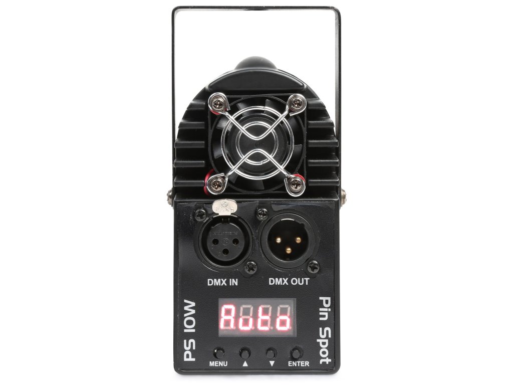 PS10W je jasný pinspot s 10 Watt 4 v 1 LED. LED sa skladá z farieb červenej, zelenej, modrej a bielej. Vzhľadom na úzky lúč je ideálny na mierenie na zrkadlové gule. Pin spot je možné ovládať cez DMX alebo spustiť samostatne v automatickom alebo zvukovo aktivovanom režime. Bod môže v priebehu času meniť farby alebo ho možno nastaviť na konkrétnu farbu. Aj po vypnutí napájania si miesto zapamätá svoje posledné nastavenie.