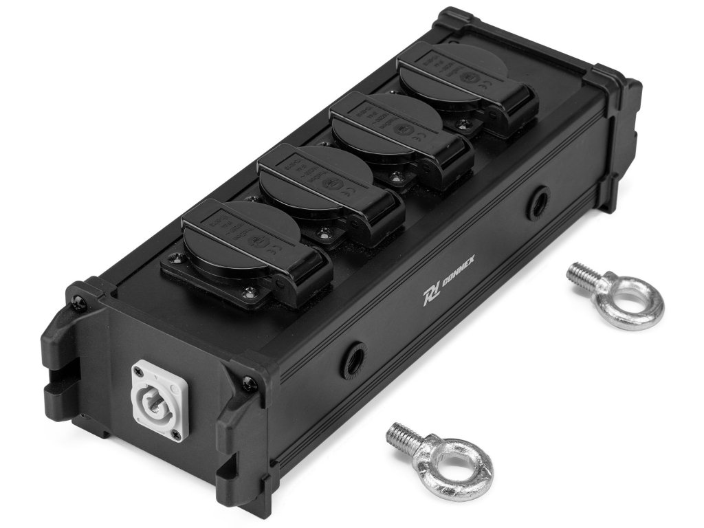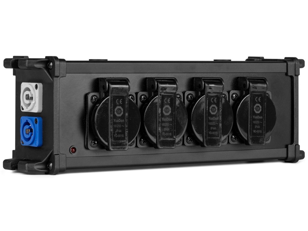 PDConnex PBS40 je napájací splitter navrhnutý tak, aby uspokojil všetky vaše potreby v oblasti napájania vybavenia a osvetlenia. Táto napájacia distribučná jednotka s prípojkami P-Con a 4 napájacími výstupmi Shuko bola navrhnutá s ohľadom na všestrannosť a pohodlie, aby zjednodušila vašu zostavu a zlepšila váš pracovný postup. Dve vložky so závitom M10 slúžia na zavesenie a pevnú montáž.