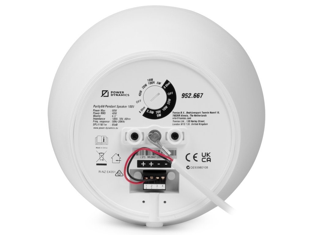 Závesné reproduktory Purity sú navrhnuté tak, aby poskytovali vynikajúci zvukový výkon v moderných komerčných priestoroch. Vďaka vylepšenému akustickému profilu a elegantnému dizajnu sú tieto závesné reproduktory ideálne na vysoko kvalitnú reprodukciu hudby na pozadí a čistý prenos hlasu. Séria Purity je vyrobená z prvotriednych materiálov, vrátane grafitového basového reproduktora pre hlbšie a presnejšie basy a vysoko výkonného výškového reproduktora s hodvábnou kupolou pre detailné výšky, a zabezpečuje vyvážený a pohlcujúci posluchový zážitok. Vďaka prevádzkovým režimom 8 Ohm a 100 V možno tieto závesné reproduktory flexibilne integrovať do širokej škály audio systémov, čo ich robí ideálnymi pre kancelárie, showroomy, obchody, reštaurácie a ďalšie komerčné priestory.