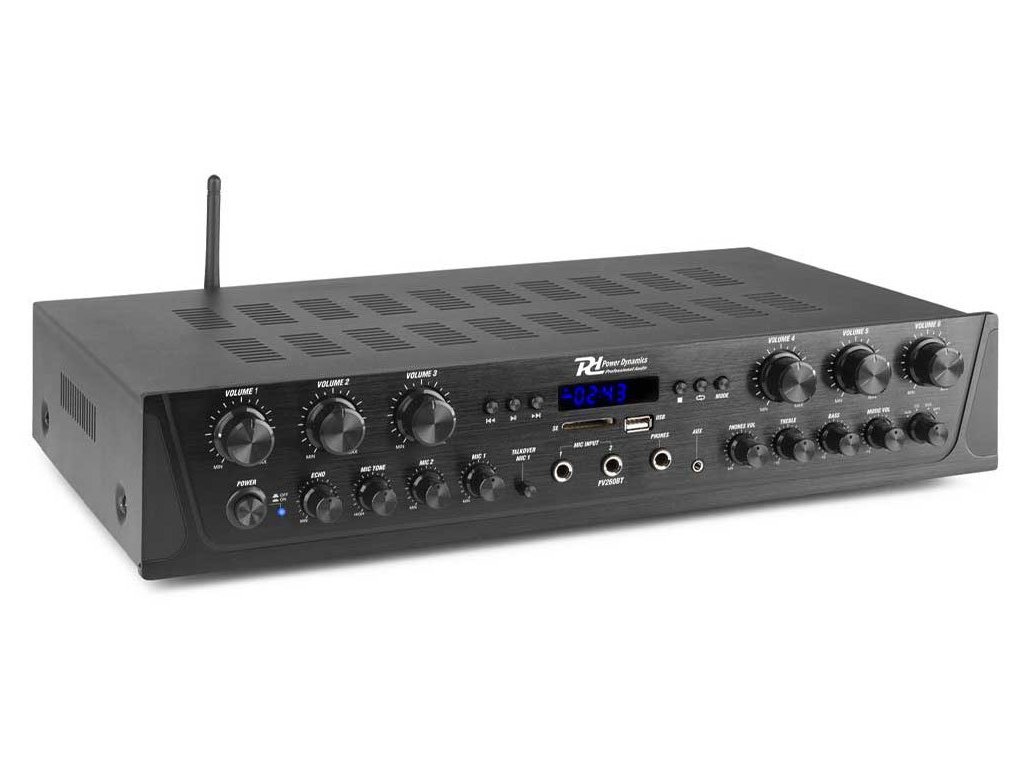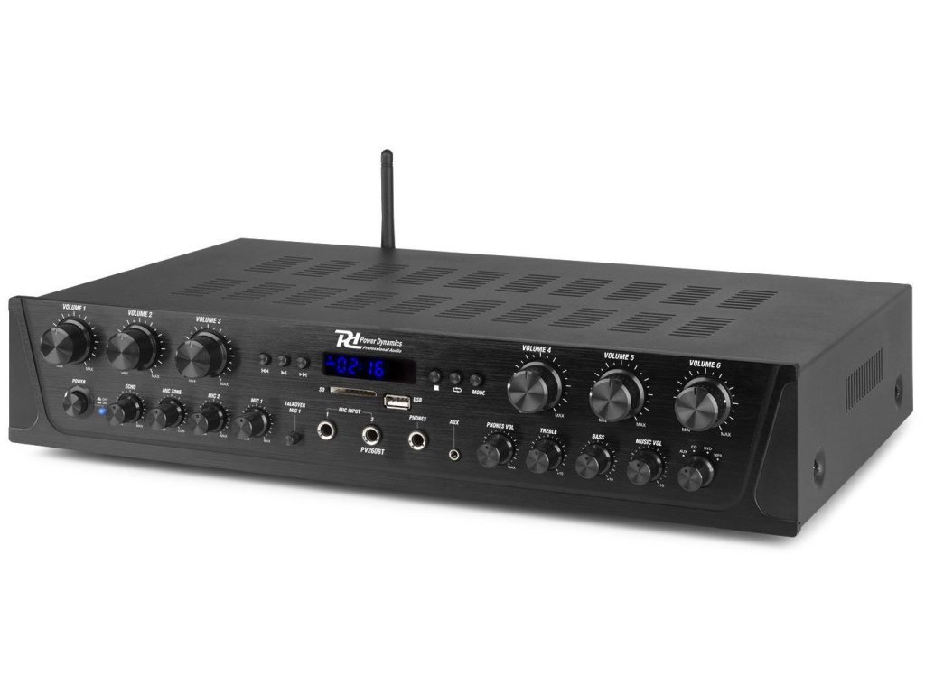 Rad PV2 je rad inteligentných stereo viackanálových zosilňovačov vybavených pokročilou bezdrôtovou technológiou 4.2 BT, fungujúci so všetkými najnovšími zariadeniami vrátane smartfónov, tabletov, notebookov a počítačov. Užite si sladký zvuk streamovaný z vašej osobnej digitálnej hudobnej zbierky. Všetky systémy ponúkajú možnosť posielať hudbu alebo oznámenia s nastaviteľným ovládaním hlasitosti pre každý kanál. Vďaka slotu pre USB / SD karty na prehrávanie MP3 / WMA, FM rádio s LED displejom a dvoma mikrofónnymi vstupmi s ovládaním tónu a zvuku Bass / Treble, je tento zosilňovač vhodný na domáce alebo kancelárske použitie.