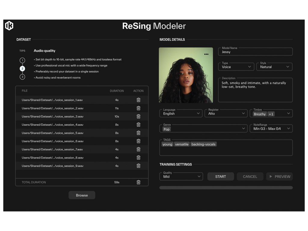 ReSing MAX ponúka pokročilé hlasové modelovanie s využitím lokálnej AI technológie na vytváranie profesionálnych vokálnych aj inštrumentálnych stôp bez nutnosti cloudového spracovania. Poskytuje rozšírenú knižnicu modelov, podporuje ARA integráciu s DAW, prevod hlasu aj nástrojov a umožňuje tvorbu vlastných hlasových modelov priamo na zariadení s plnou kontrolou nad štýlom, energiou a artikuláciou.