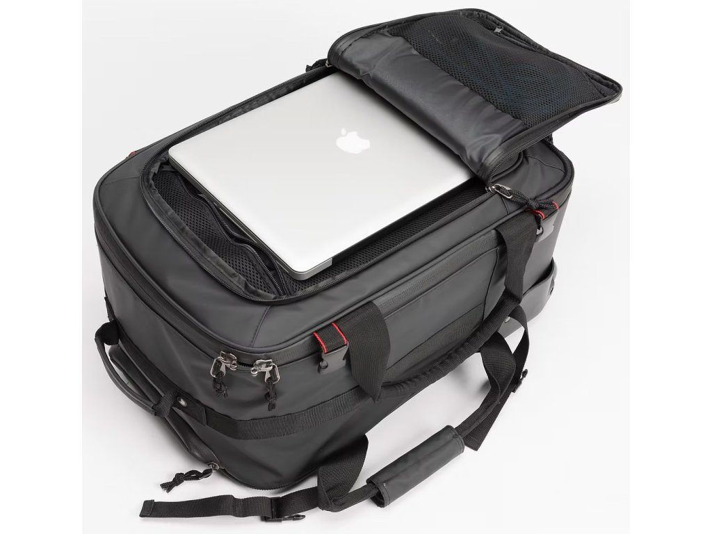 Vyrobené výhradne z najkvalitnejších materiálov, ako je nepremokavá plachta RIOT Tarpaulin, robustná teleskopická rukoväť a presné kolieskové kolieska s hladkým chodom. Vďaka tomu je zabezpečená maximálna ochrana vašej cennej investície.