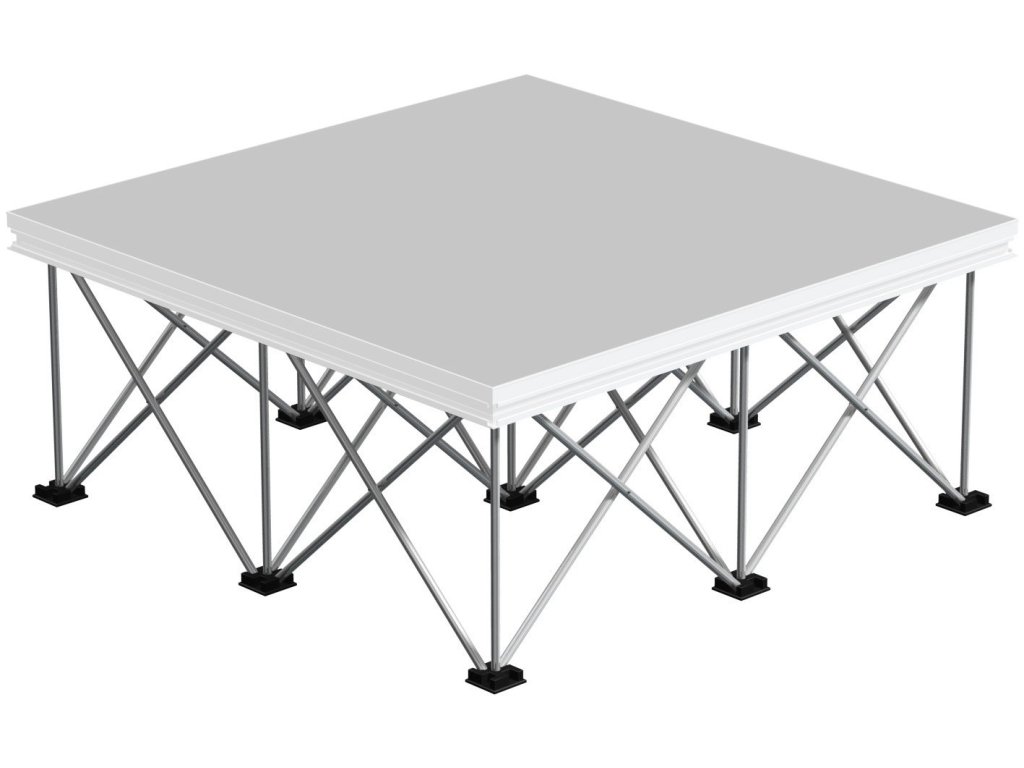 Pódiový systém Riser Deck750 je vybavený jedinečným skladacím systémom, pomocou ktorého ho možno ľahko skladovať a prepravovať. Nohy Leg Riser sú k dispozícii v 5 rôznych výškach, takže môžete v prípade potreby meniť výšku pódia.