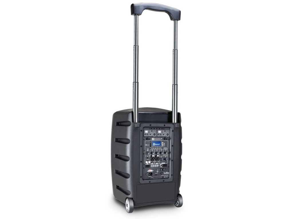 LD Systems Roadbuddy je ľahko prenosný vďaka zabudovaným otočným kolieskam a vyťahovacej rukoväti. Hore je praktický úložný priestor až pre dva ručné vysielacie mikrofóny. Plastové puzdro tohto ľahkého zariadenia bolo skonštruované tak, aby pojalo 35 mm statívový držiak.