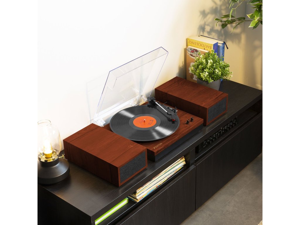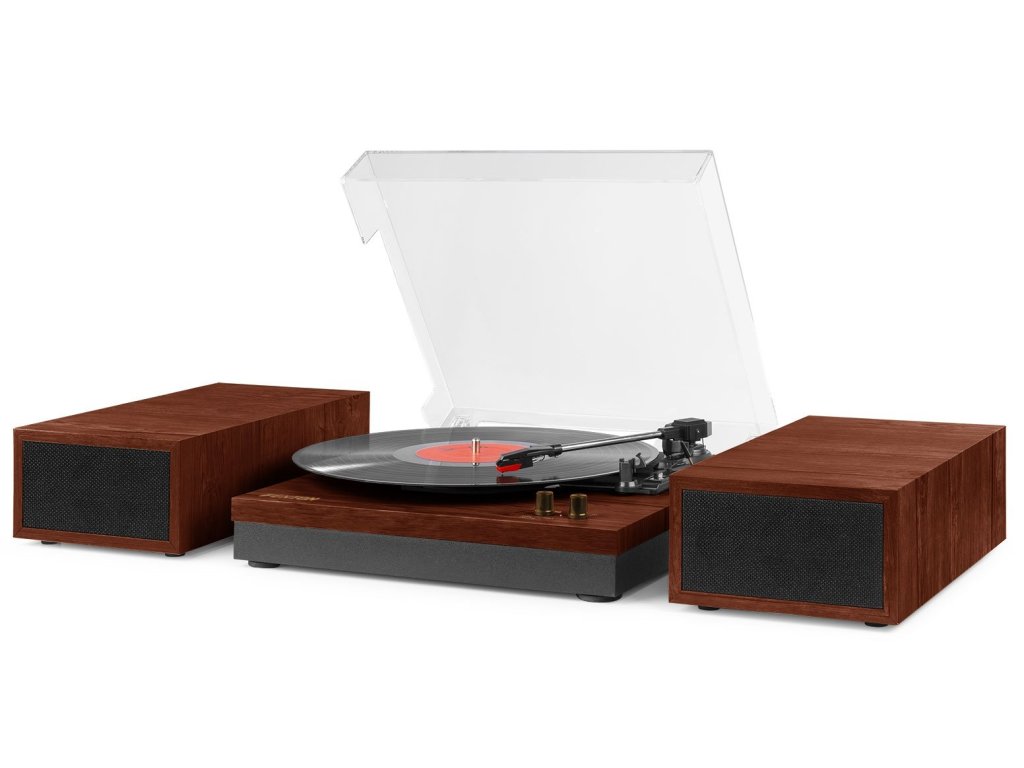 Gramofón Fenton RP165 s vstavaným zosilňovačom má elegantne jednoduchý dizajn. Počúvajte svoje vinylové platne s optimálnym zvukom nastavením hlasitosti na dvoch priložených reproduktoroch. Tieto duálne stereo 50 wattové reproduktory prehrávajú hudbu buď z 3 rýchlostného gramofónu (33 1/3, 45, 78 ot./min.) alebo z vstavanej technológie BT pre bezdrôtové streamovanie hudby z akéhokoľvek zariadenia s podporou BT.