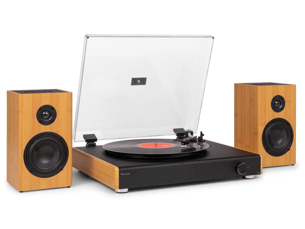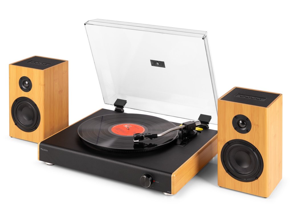 - Štýlový vintage gramofón s dvoma full range stereo reproduktormi