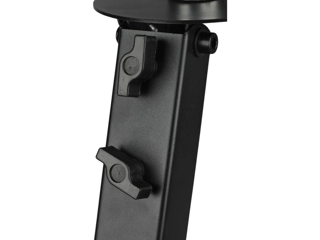 DNA RS1 ponúka široký rozsah nastavenia výšky od 86 cm do 152 cm, vďaka čomu ho prispôsobíte svojim potrebám. Okrúhla základňa s priemerom 13 cm a dva zaisťovacie gombíky na každej nohe zaručujú vynikajúcu stabilitu. V závislosti od výšky predstavuje rozstup nôh statívu od 65 cm do 106 cm, čo ďalej zvyšuje úroveň bezpečnosti vášho vybavenia. DNA RS1 je vynikajúcou voľbou pre DJov, zvukárov a pódiových technikov.