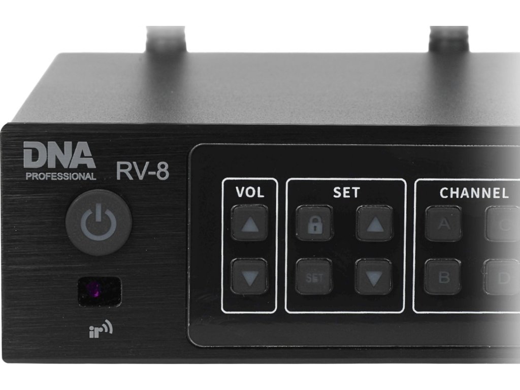 DNA RV-8 je bezdrôtový UHF set, ktorý bol navrhnutý pre súčasnú obsluhu viacerých rečníkov na pódiu, konferenciách a eventoch. Ponúka 8 nezávislých mikrofónov, stabilnú prevádzku vo frekvenčnom pásme 610-690 MHz a synchronizáciu cez infraport, čo výrazne skracuje dobu nastavenia pred vystúpením. Skvele sa uplatní v kultúrnych domoch, konferenčných sálach, kostoloch, ale aj na svadbách, vonkajších koncertoch či firemných akciách, kde je kladen dôraz na zrozumiteľnosť reči a kontrolu nad zvukom.