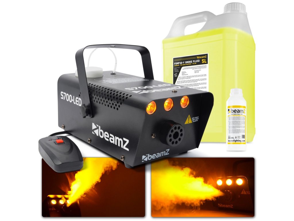 Výhodný set výrobníka hmly s efektom ohňa BeamZ S700LED, BeamZ BeamZ FSMF5E-Y náplne do výrobníka 5L Standart a BeamZ FSMC čistiacej kvapaliny pre výrobníky 250ML.