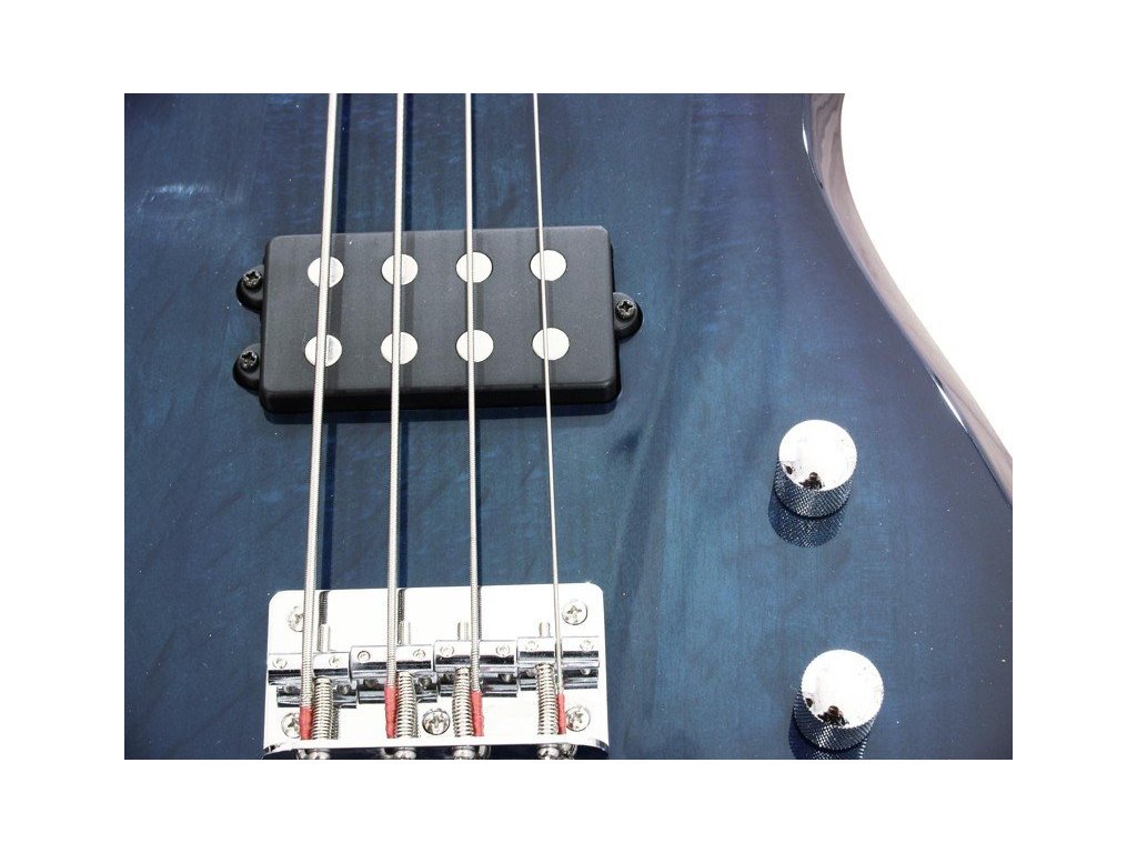 Elektrická basgitara. Krk z javora priskrutkovaný na telo z catalpového dreva. Hmatník z ružového dreva s 24 pražcami. 1 x Humbucker snímač. 1 x ovládač hlasitosti, 1 x regulácia farby tónu. Kobyla klasická, "JB" štýl. Hardware chrómovaný. Farba modrá.