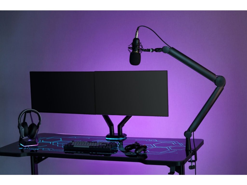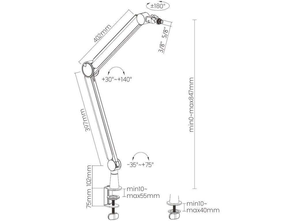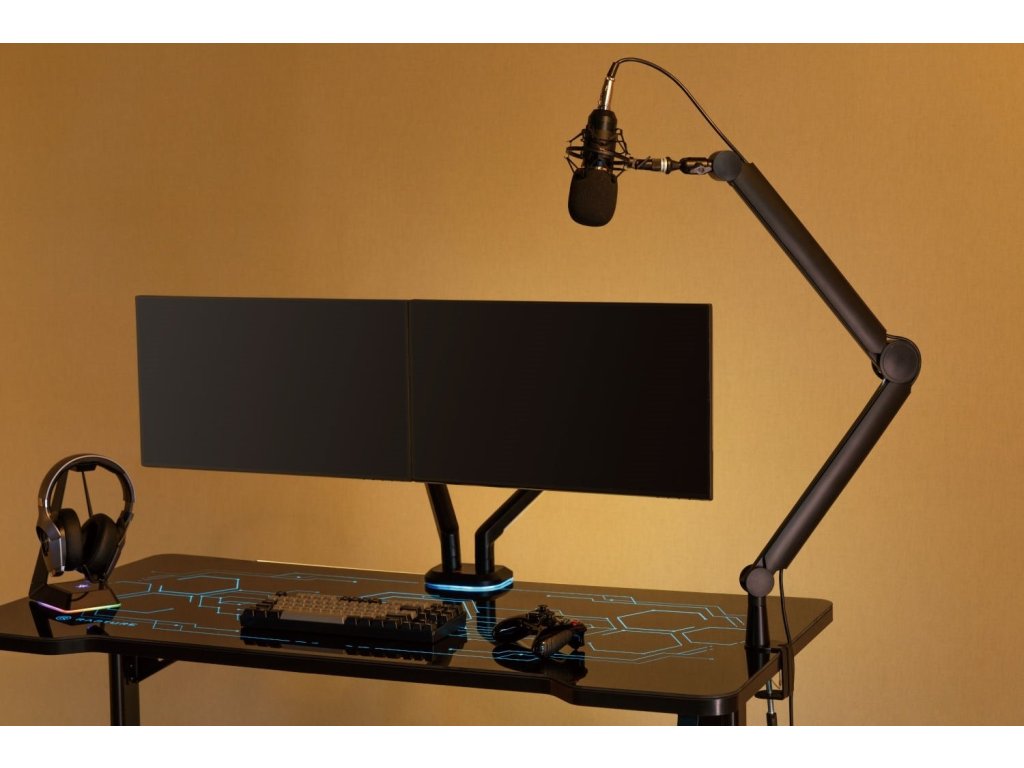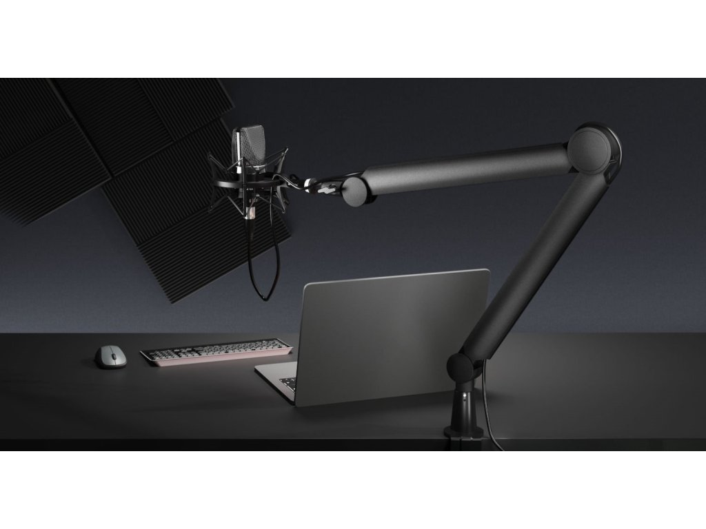 Mikrofónové rameno so širokou kompatibilitou, zabudovaným organizátorom káblov a možnosťou otočenia ramena v uhle 360 stupňov. Rameno je možné pripevniť k hrane stola s maximálnou hrúbkou dosky 5,5 cm aj do otvoru v doske. Použitý materiál oceľ, plast a hliník.