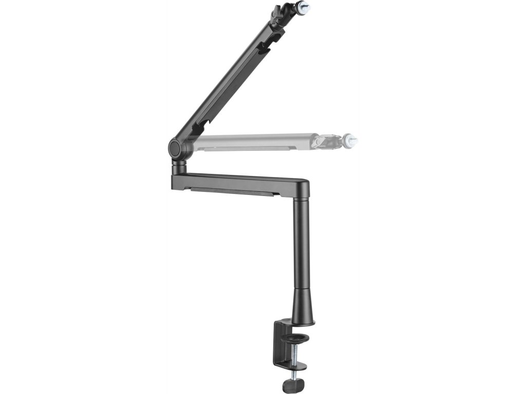 Mikrofónové rameno so širokou kompatibilitou, zabudovaným organizérom káblov a možnosťou otočenia ramena v uhle 360 stupňov. Rameno je možné pripevniť k hrane stola s maximálnou hrúbkou dosky 6 cm aj do otvoru v doske. Použitý materiál oceľ, plast a hliník. Závit 3/8″ a 5/8″.