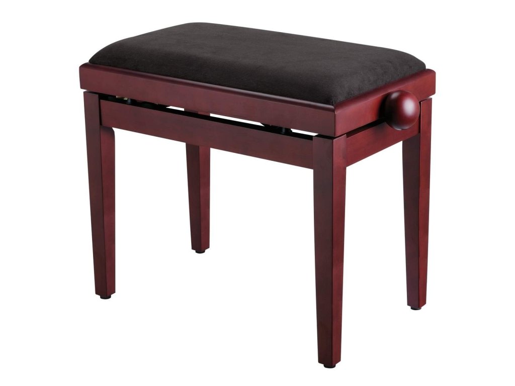 Klavírna stolička klasického strihu s jednoduchým nastavením výšky a pohodlným sedadlom s poťahom z čierneho zamatu. Sedadlá sa vyrábajú v lesklom aj matnom prevedení a k dispozícii sú v niekoľkých farebných prevedeniach zodpovedajúcim najčastejším farbám pián a krídel.